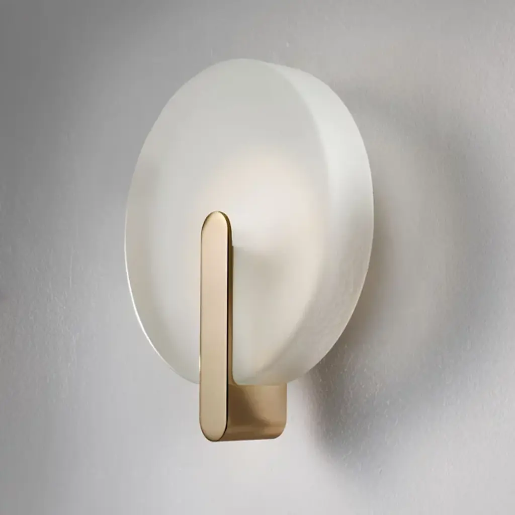 The Sinua LED Wall Sconce from Italamp features a pleasing contemporary design crafted from straightforward shapes and rich materials. A refined geometric creation from the mind of Chicago artist and designer Steven Haulenbeek, this ADA-compliant design features a rounded steel bracket that secures a bowl-shaped glass shade around inner LED lamping. The efficient light emanates through the translucent glass surface, contrasting with the direct wall wash at the center of the shade.