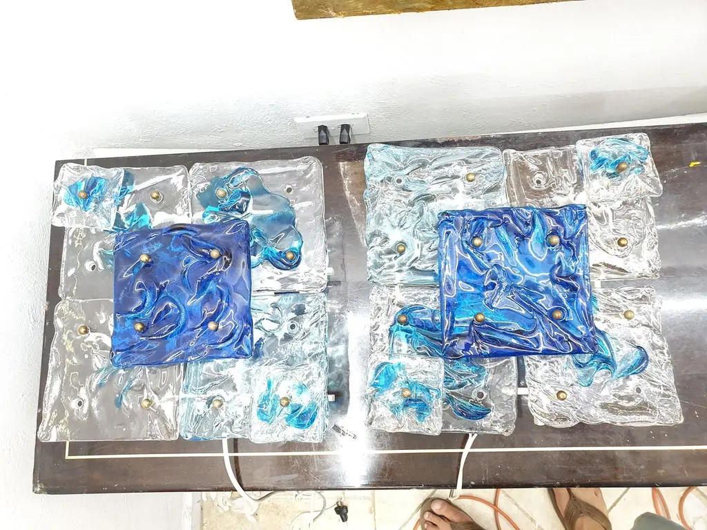 Six Mid-Century Modern "Patchwork" Glass Sconces By Toni Zuccheri For Venini