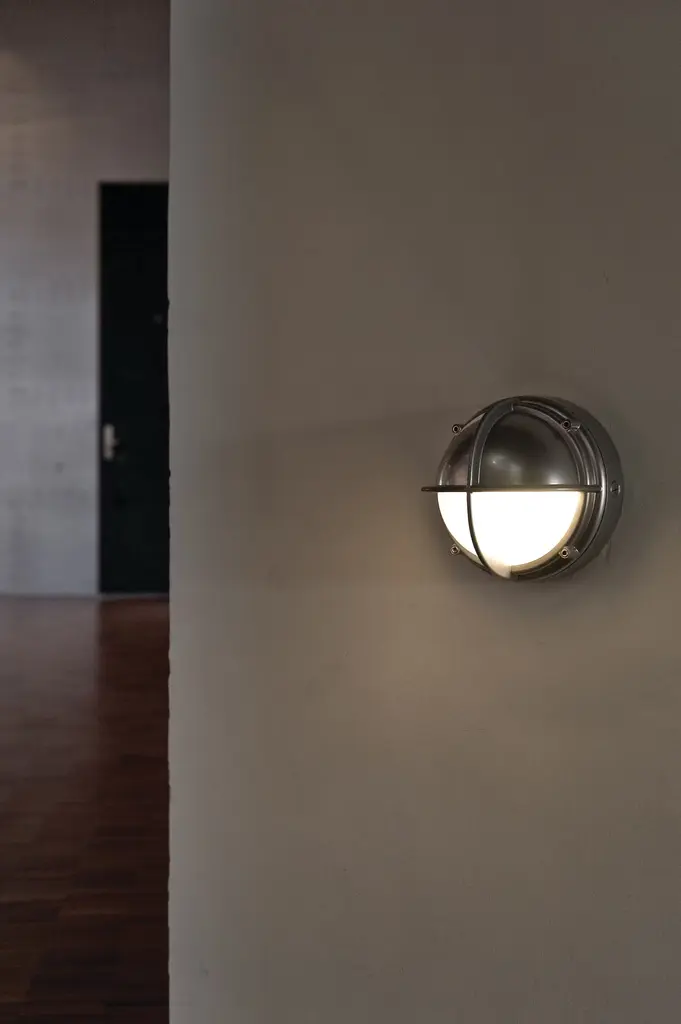 Skot (early 1900s) was originally developed by Lauritz Knudsen for both ships and maritime areas, but has since become popular in other environments for its compact, sturdy construction. Choose from versions that provide two types of light distribution: symmetric or asymmetric. The symmetric version can be used as a ceiling or wall light, and the asymmetric version is recommended only for wall mounting. Bulb (included): 15W/E26 LED. UL Listed. Made in Denmark.