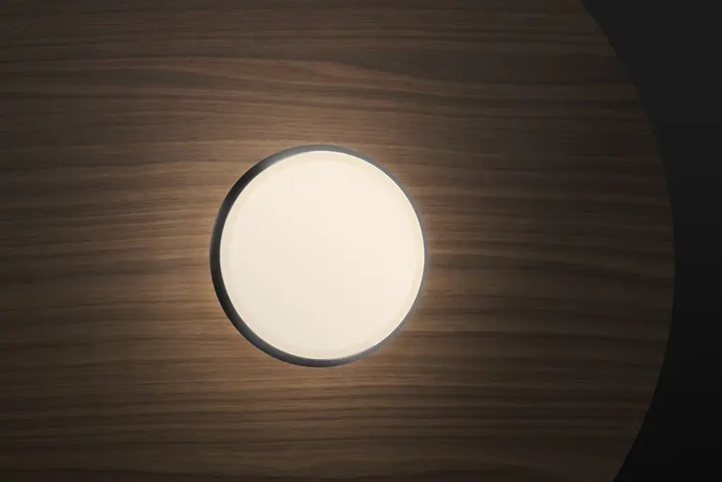 The Sky collection is a modular pendant lighting system featuring multiple shade reflector solutions for various decorative and performance benefits. Sky Dome Flush is available in both spun aluminum and pressed wood shade reflectors that when combined with their powerful 2-sided LED light source gives the lamp a weightless appearance while providing unparalleled illumination in all directions. Sky Dome combined form and function with unsurpassed quality. At just 4" from the wall, it is ADA compliant for wall and corridor installations. Dome wood is available in 2 sizes: 18” (45.8cm) and 24”(61cm). Dome Metal is available in 3 sizes: 18” (45.8cm), 24”(61cm), and 32” (81.3cm). The Sky collection is made of the Sky Solo, Sky Dome, and Sky Sound lamps.FeaturesWarm Dim Light Source Fully dimmable Uplight/downlight Energy-efficient, flat panel technologyGlare-free illuminationADA CompliantSpecificationsVoltage: 120V (100-277V 50/60Hz Available upon request)Power Consumption: 18W MAXColor Temperature: 2700K-2200K DTWNote: 3000K/3500K models Available upon RequestLuminosity: 1250 Lumens total (850 down/400 up)Luminaire Efficacy: 70 Lumens/WattColor Rendition Index: 90 CRI50K hour lifespanCERTIFICATIONS: ETL, CE