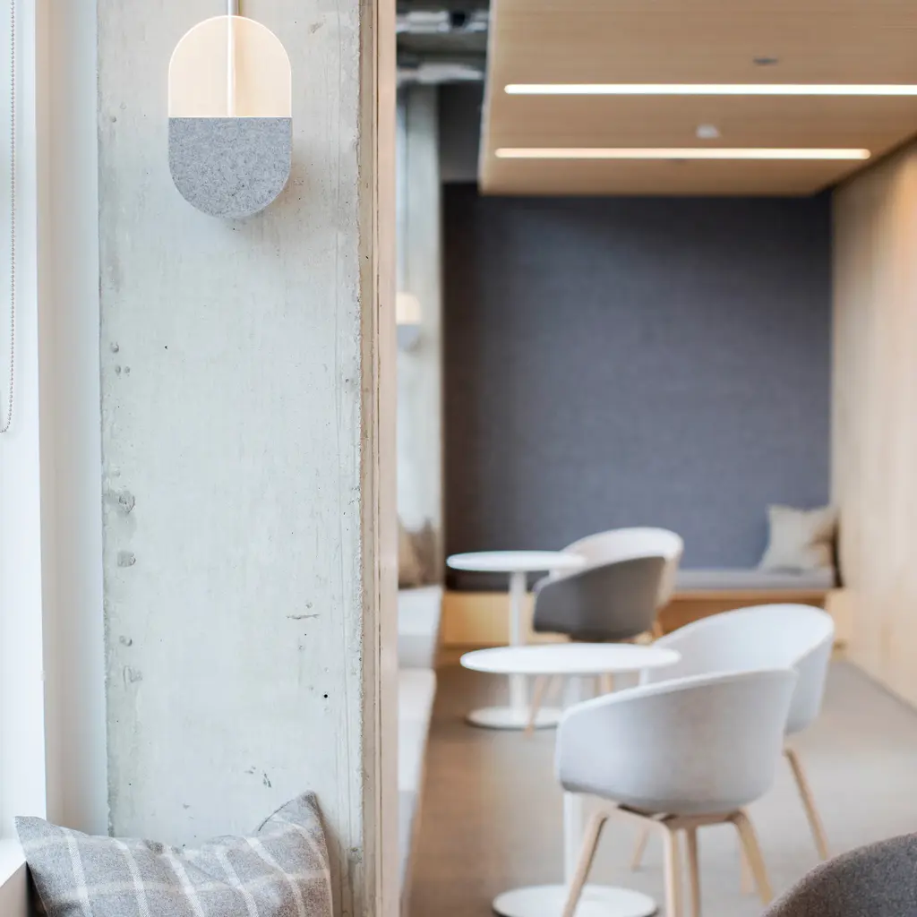 Slab W20 is an unusually tactile LED fixture from Vancouver-based breakout firm A-N-D, covered in industrial-grade felt made from 100% pure wool or natural cork. Conceived to reduce acoustic ambient sound in the surrounding environment, its ultra-thin proportions have a minimally intrusive appearance and are available in a series of decor colors.