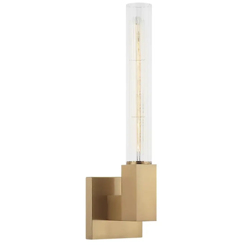 The Slade Wall Sconce from Alder & Ore complements the home’s architectural edge with sharp hardware and crisp highlights. This neat piece looks sharp in modern or contemporary spaces. Place it over a column or next to an entryway, thanks to compact geometric hardware. The bold finish of the metal hardware reflects on the artfully ribbed glass. A long bulb complements the glass to deliver a generous beam of warm, detailed illumination.