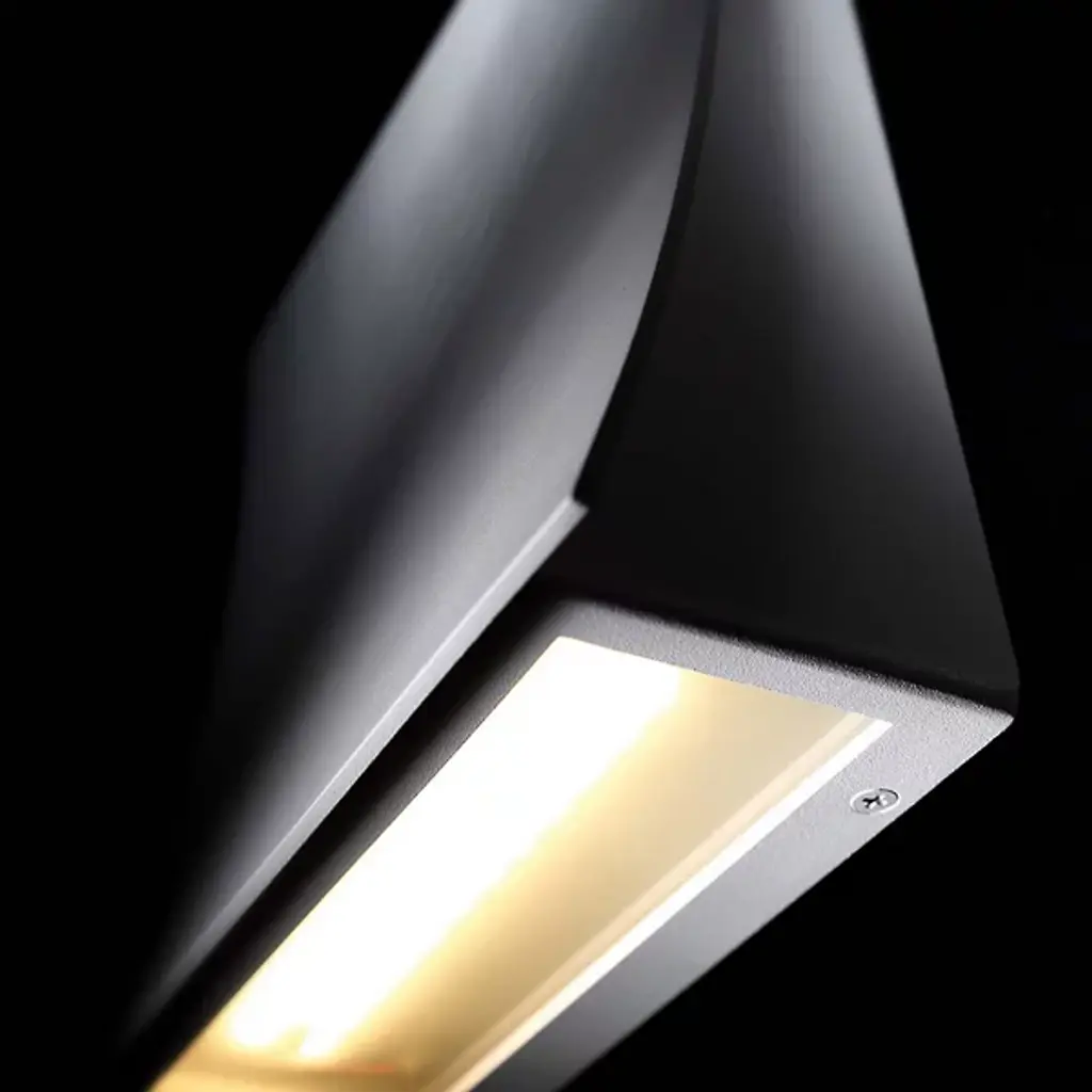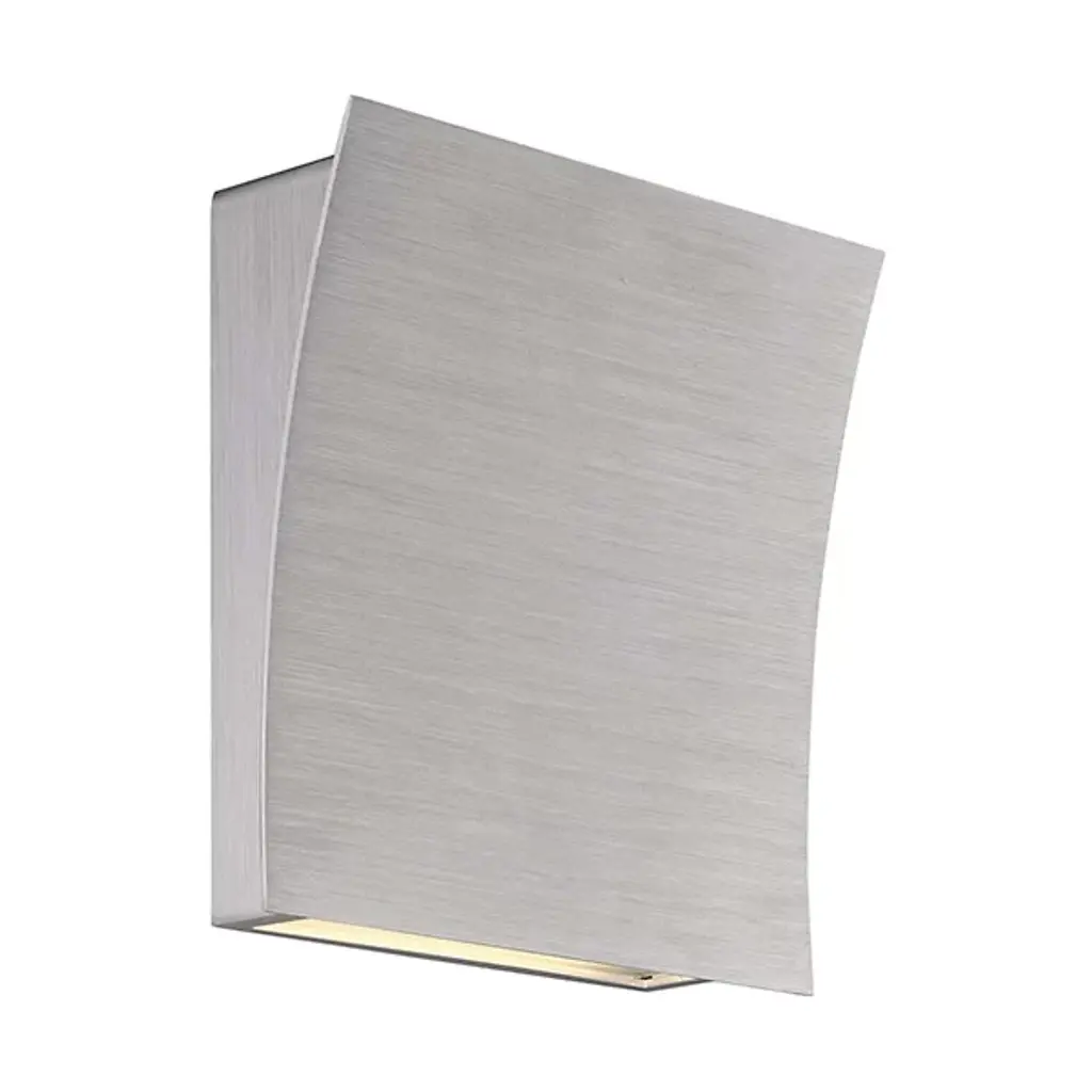 Kinetic Minimalism. Watch as soft light swoops and slides in one effortless motion with the Slide LED Wall Sconce from Modern Forms. A glance from the front produces a handsome square face. Look at the piece from the side and see as its metal structure comes to life with a swooping silhouette filled with depth. A geometric housing sits in the back with LEDs and two openings on the top and bottom. The direction of the metal face accentuates the trajectory of an ambient glow fanning across its wall.
