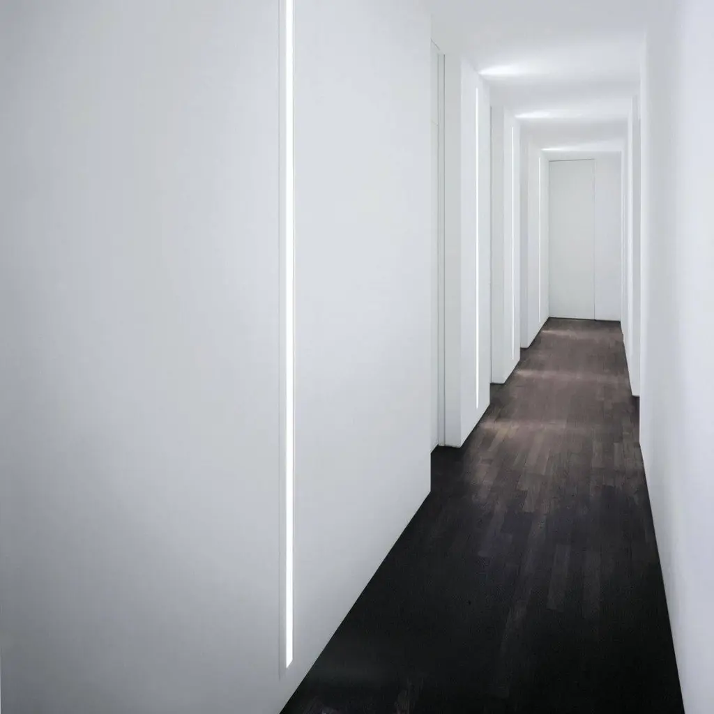 "Slot" is an architectural wall and ceiling lighting system, designed by David Chipperfield and manufactured by FontanaArte, featuring a series of recessed wall or ceiling lamps for indirect light emission, a matte white epoxy powder coated metal frame housing fluorescent dimmable bulbs. A cover, held in place by neodymium magnets, makes the fixture easy to assemble and maintain. Slot fits a dimmable electronic power supply (1-10V) and can be mounted with or without its housing (required for plasterboard false ceilings).DIMENSIONS: D. 3.74", W. 3.74", H. 59.45"For correct installation the lamp includes a 0.15"-slit on all 4 sides. Its lighting source is one × 35W (FL) G5 FH or one × 49W (FL) G5 FQ or one × 80W (FL) G5 FQ. The minimal design creates a lighting effect similar to a spotlight beam on a wall. This makes "Slot" especially suitable for private and public spaces that require non-invasive yet decorative lighting effects. A series of recessed lamps for walls or ceilings that gives indirect light. The structure is in matt white epoxy powder coated metal and houses one or more dimmable fluorescent lamps. Its essential design creates a luminous effect similar to a blade of light on the wall.DAVID CHIPPERFIELD, graduated in architecture in 1977, immediately began working with the studios of Richard Rogers and Norman Foster. In 1984, he founded his own practice, David Chipperfield Architects in London, opening offices also in Tokyo, Milan, Berlin and Shanghai. The studio’s most important work includes the River and Rowing Museum (Henley on Thames), the Anchorage Museum of History and Art (Alaska), the City of Justice in Barcelona, the America's Cup Building Veles e Vents (Valencia) and the Neues Museum (Berlin).Major projects currently in progress include Ansaldo, City of Cultures (Milan), the Figge Art Museum (Davenport), the Natural History Museum in Verona, Salerno Palace of Justice (Salerno) and the expansion of the cemetery on the Island of San Michele, Venice.David Chipperfield is Professor of Architecture at Stuttgart’s Staatliche Akademie der Bildenden Kunste and holds the Mies Van Der Rohe Chair at the Escola Tecnica in Barcelona.Being subject of much international recognition, he has been appointed Commander of the Order of the British Empire (CBE) and knighted by the United Kingdom for his services in the field of architecture, he is an honorary member of the Florence Academy of Fine Arts, he has received the Wolf prize for the Arts and a Royal Institute of British Architects gold medal for architecture. For Fontana Arte, he has designed the Chandelier hanging lamp and Corrubedo, the wall lamp for indoor and outdoor lighting.