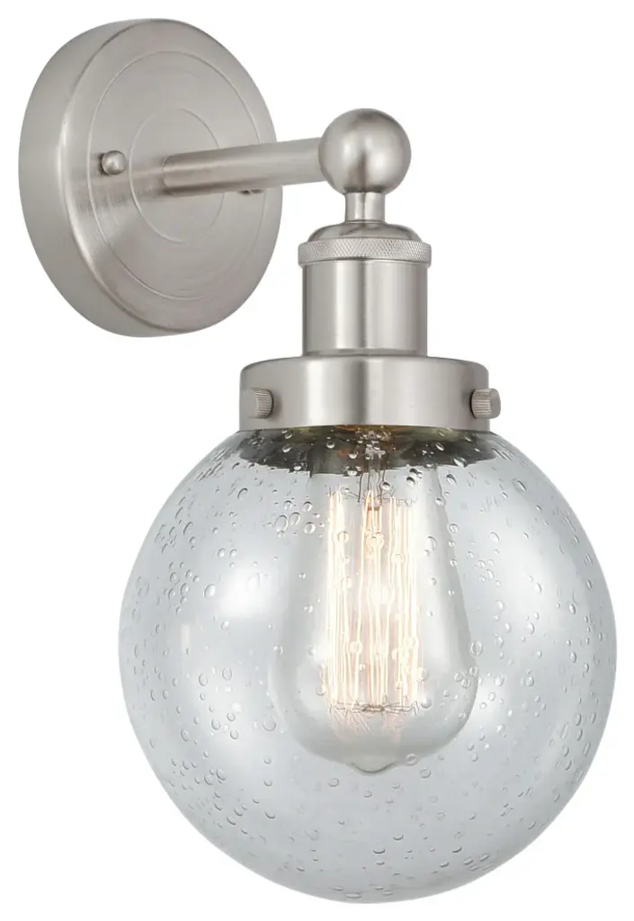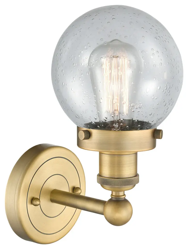 Small Beacon 1-Light 7" Sconce, Brushed Brass Finish, Seedy Shade