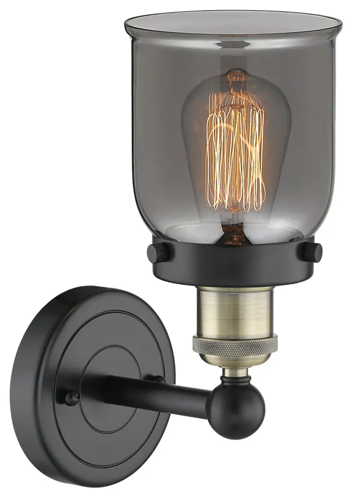 Small Bell 1-Light 7" Sconce, Black Antique Brass Finish, Plated Smoke Shade