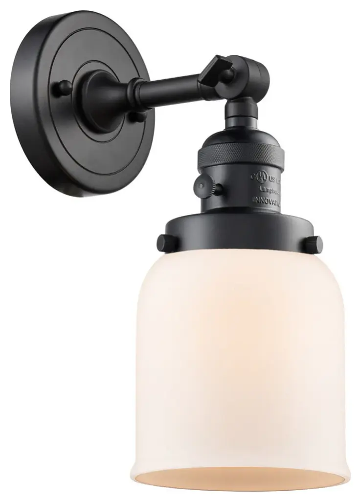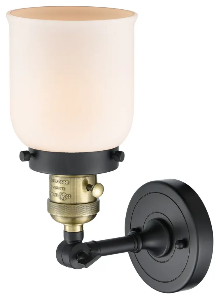 Small Bell 1-Light Sconce, Black Antique Brass, Glass: Matte White Cased