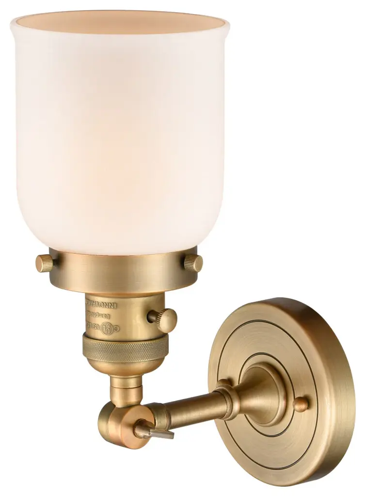 Small Bell 1-Light Sconce, Brushed Brass, Glass: Matte White Cased