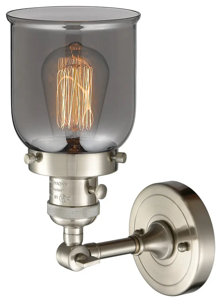 Small Bell 1-Light Sconce, Brushed Satin Nickel, Glass: Plated Smoked