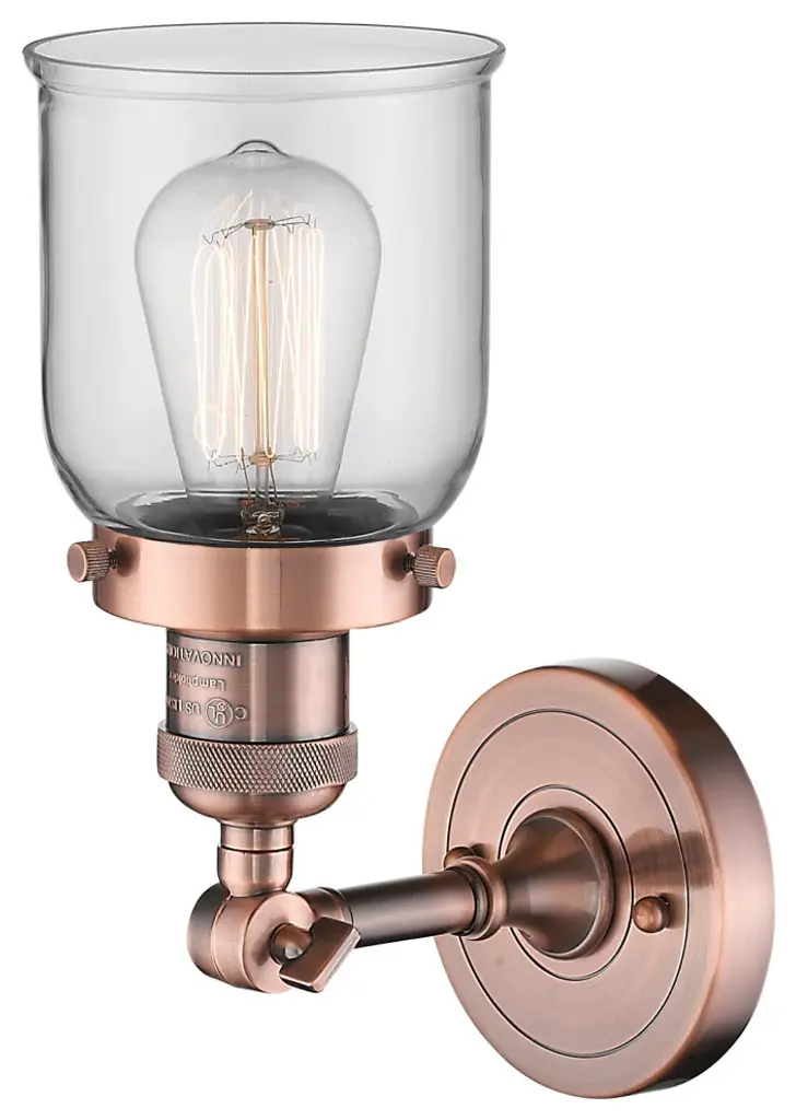 Small Bell 1-Light Sconce, Clear Glass, Antique Copper