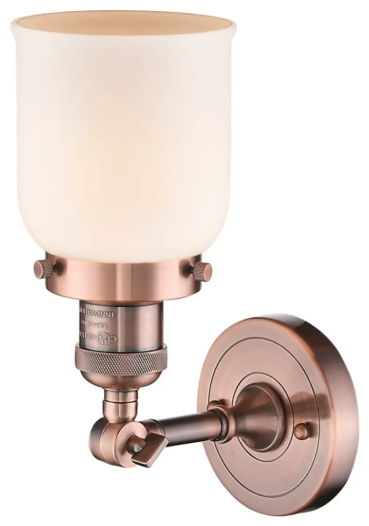Small Bell 1-Light Sconce, Matte White Cased Glass, Antique Copper