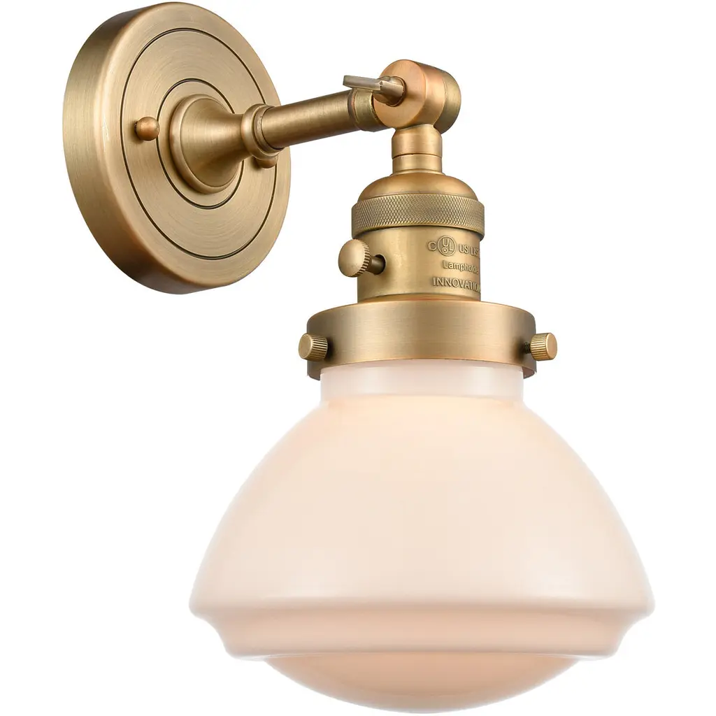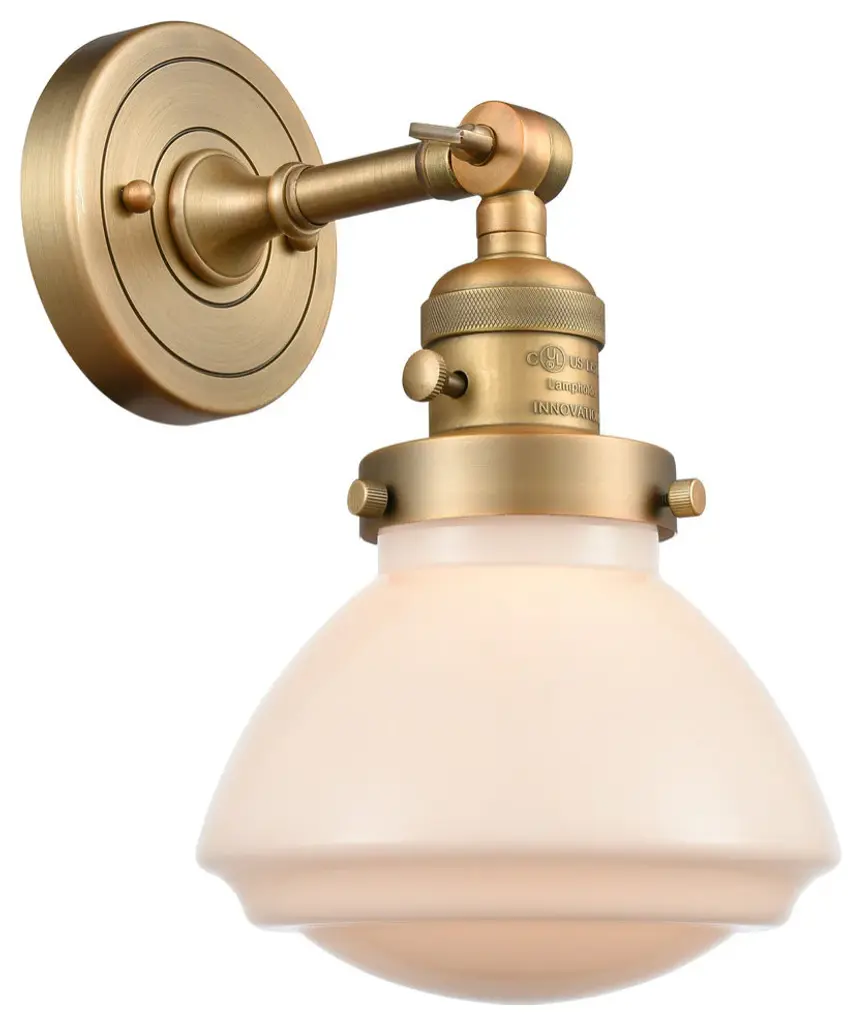 One of our largest and original collections, the Franklin Restoration is made up of a vast selection of heavy metal finishes and a large array of metal and glass shades that bring a touch of industrial into your home.Features:Solid brass 180 degree adjustable swivel with internal teeth that lock in at 5 degree intervals, and engraved cast cupFixture can be hung with bulbs facing up or down as a wall mount, or facing down as a ceiling mount4.5 inch 2mm heavy cast backplateDistance from outlet opening to top of fixture 2.25 inchesRated for 100 watt maximumUL/CUL and ETL/CETL damp ratedCompatible with incandescent, LED, fluorescent and halogen bulbsNumber of Bulbs: 1Bulb Wattage: 60Bulb Type: IncandescentBulb Included: NoVoltage: 120Finish: Antique Copper Finish Shade Finish: Matte White Shade