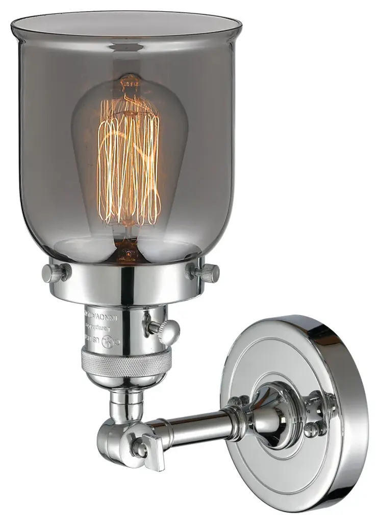 Small Bell 1-Light Sconce, Polished Chrome, Glass: Plated Smoked
