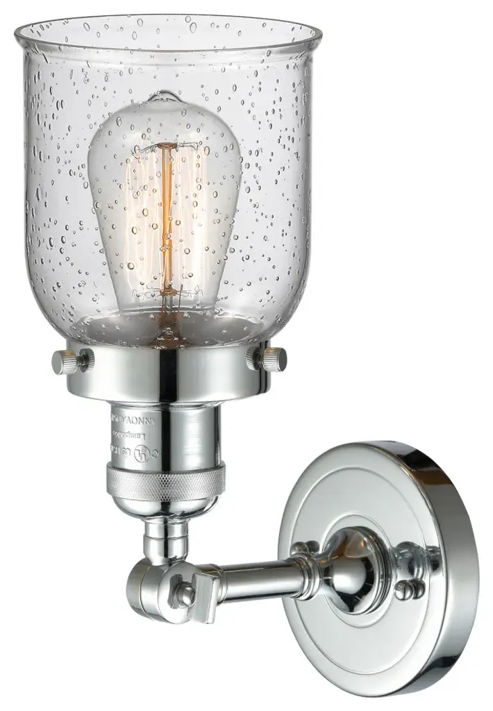 Small Bell 1-Light Sconce, Seedy Glass, Polished Chrome