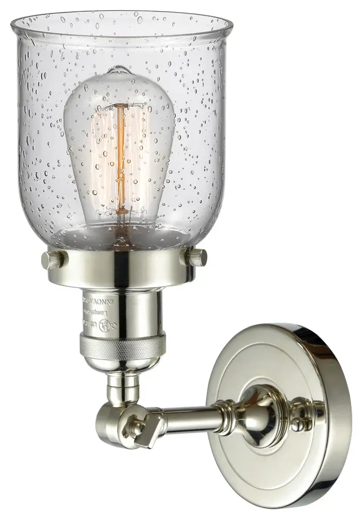 Small Bell 1-Light Sconce, Seedy Glass, Polished Nickel