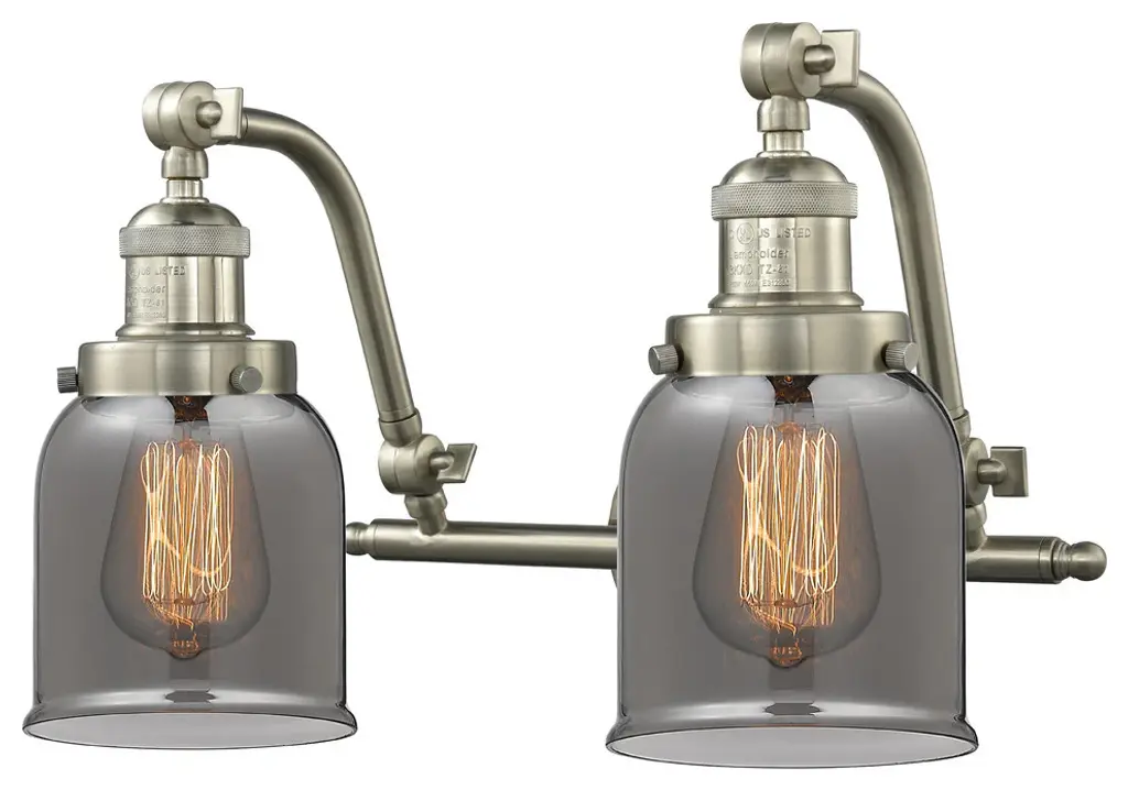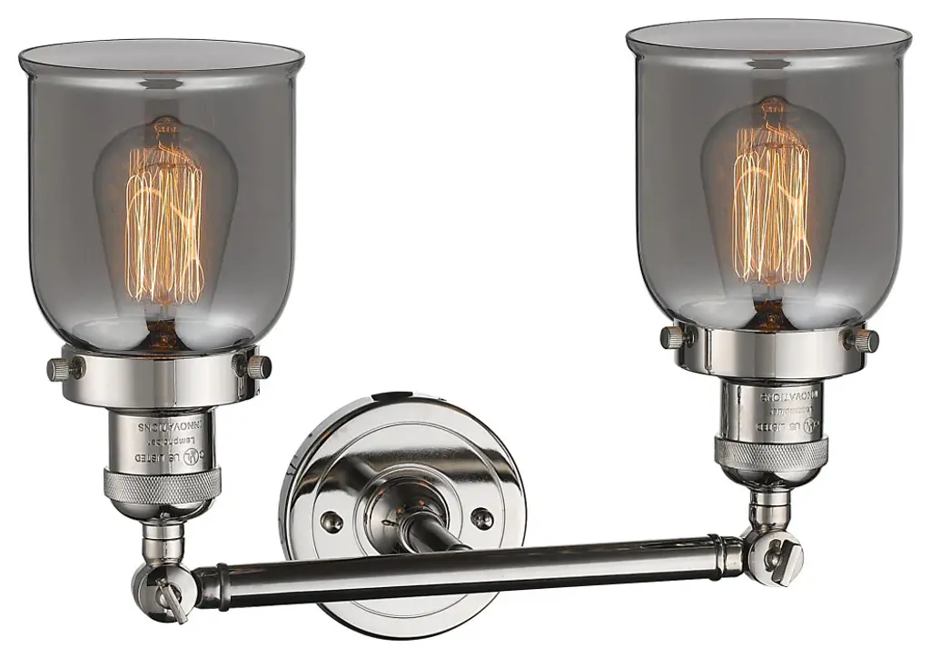 Small Bell 2-Light Bath Fixture, Smoked Glass, Polished Nickel