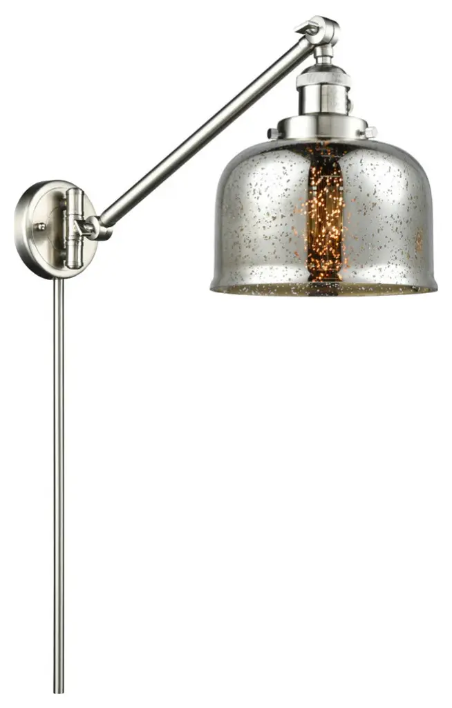 Small Bell 30 Inch 60.00 Watt Satin Nickel Swing Arm Wall Light, Franklin Restoration