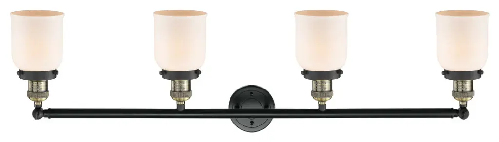 Small Bell 4-Light Bath Fixture, Matt White Cased Glass, Black Antique Brass