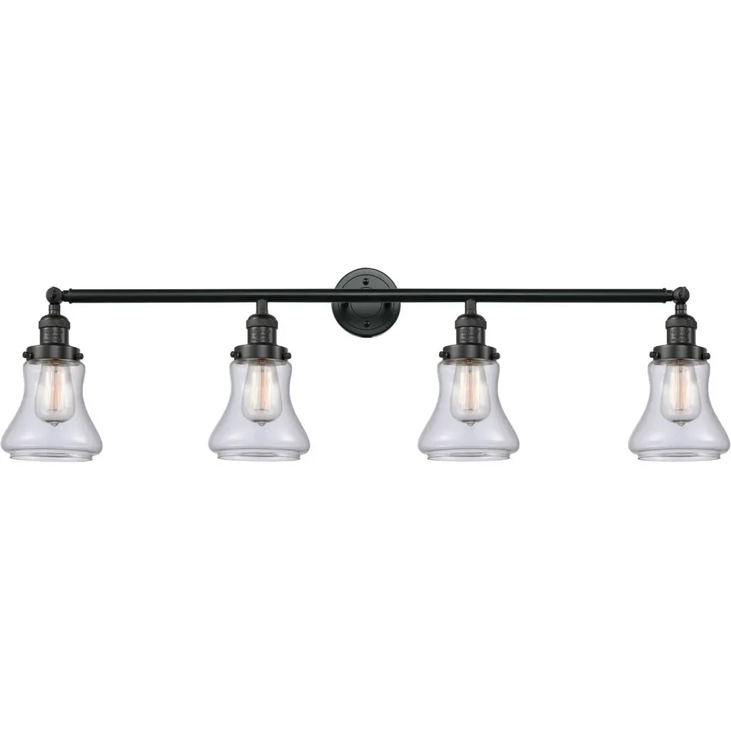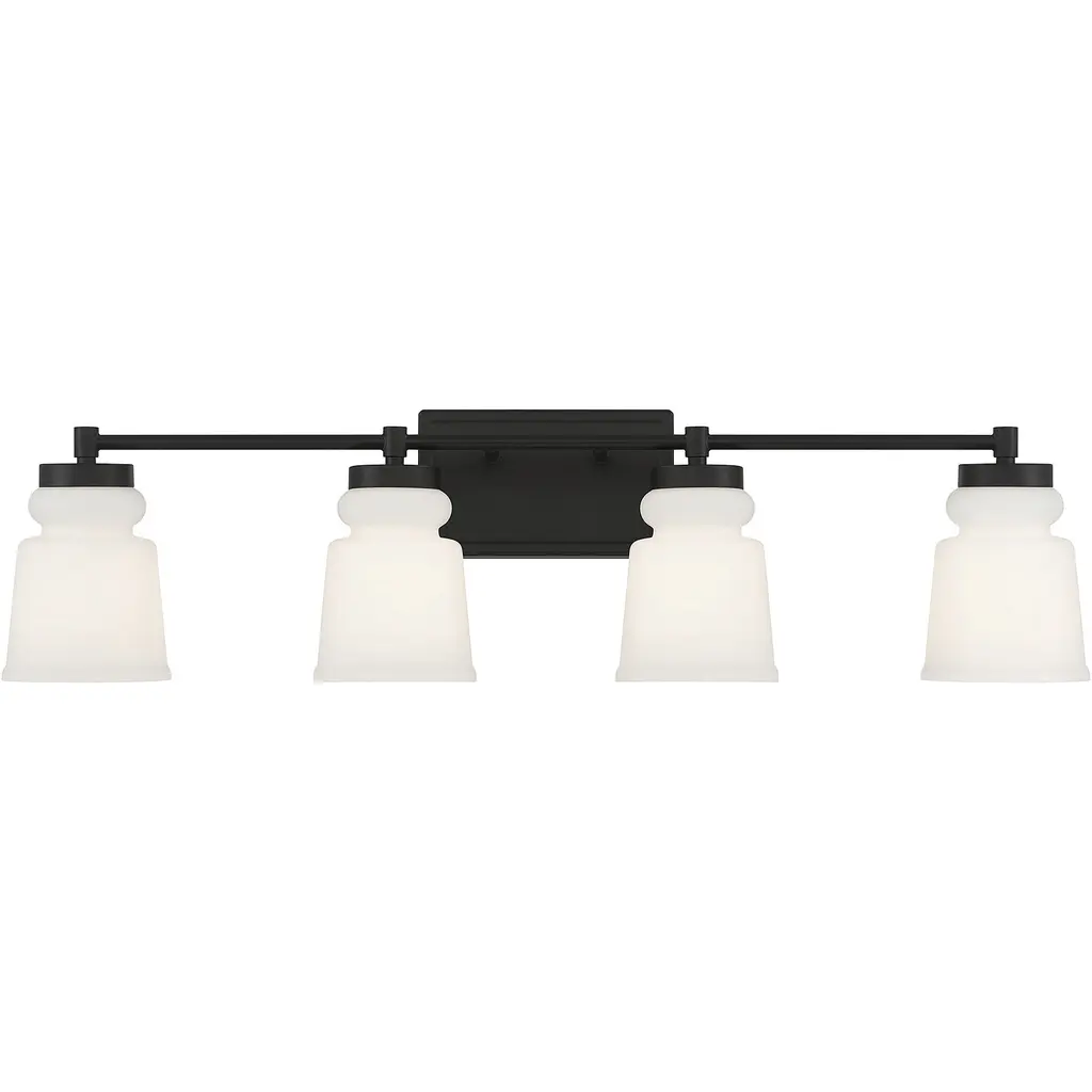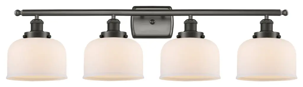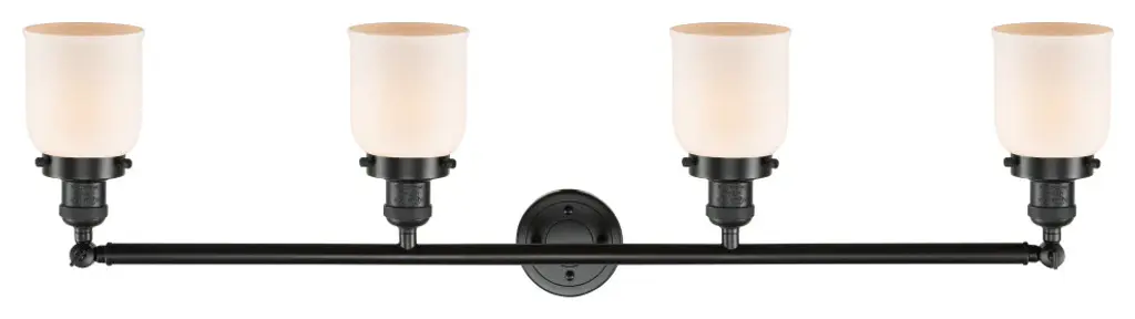 Small Bell 4-Light Bath Fixture, Matt White Cased Glass, Oil Rubbed Bronze