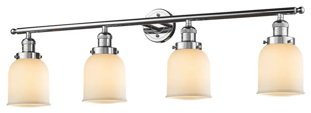 Small Bell 4-Light Bath Fixture, Matt White Cased Glass, Satin Brush Nickel