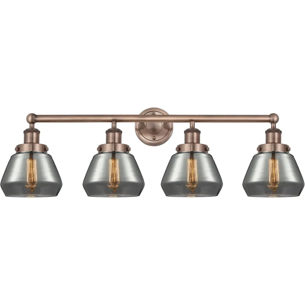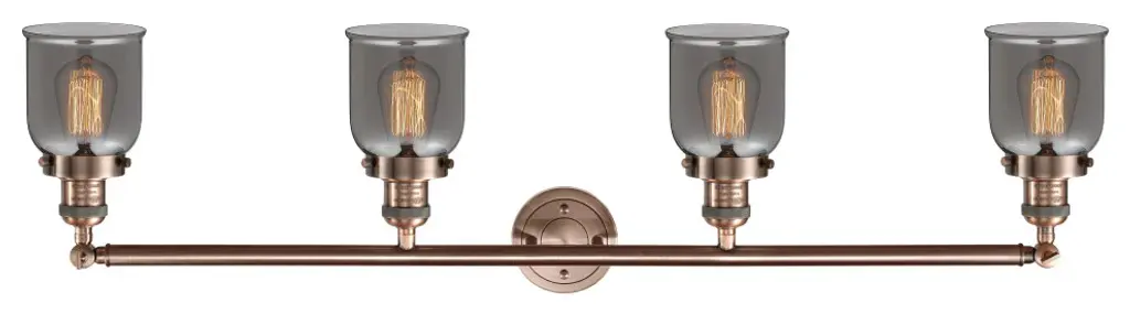 Small Bell 4-Light Bath Fixture, Smoked Glass, Antique Copper