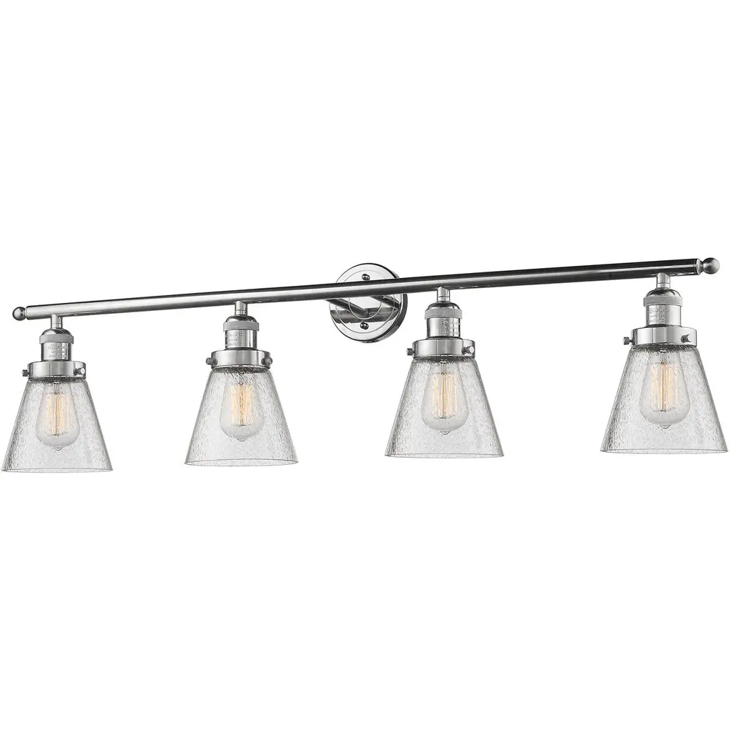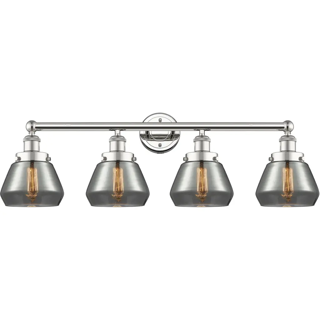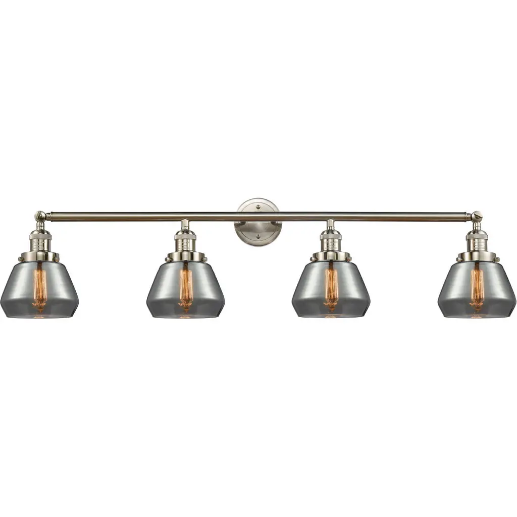 One of our largest and original collections, the Franklin Restoration is made up of a vast selection of heavy metal finishes and a large array of metal and glass shades that bring a touch of industrial into your home.Features:Solid brass 180 degree adjustable swivels with internal teeth that lock in at 5 degree intervals with engraved cast cupRated for 100 watt maximum per socketUL/CUL Damp RatedCompatible with Incandescent, LED, Fluorescent and Halogen bulbsNumber of Bulbs: 4Bulb Wattage: 100Bulb Type: IncandescentBulb Included: NoVoltage: 120Finish: Polished Chrome Finish Shade Finish: Plated Smoke Shade