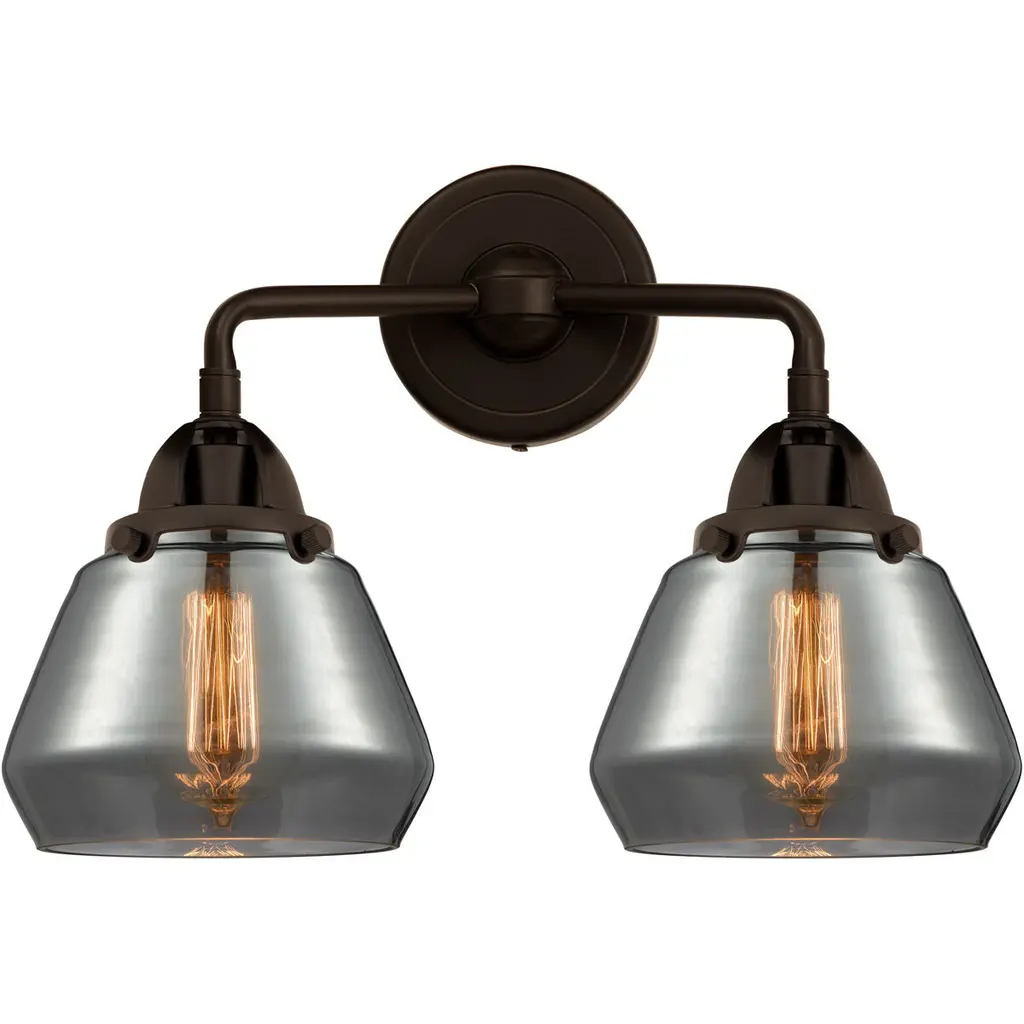 The Nouveau 2 is a highly detailed work of art that draws the eyes into its base and arm detail. The true show stopping piece is the beautifully curved glass shade that''s sure to wow you and guests alike.Features:Fixture can be hung with bulbs facing up or down4.5 inch 2mm heavy cast backplateDistance from outlet opening to top of fixture 2.25 inchesRated for 100 watt maximum per socketUL/CUL Damp RatedCompatible with Incandescent, LED, Fluorescent and Halogen bulbsNumber of Bulbs: 2Bulb Wattage: 3.5Bulb Type: LEDBulb Included: IncludedVoltage: 120Finish: Oil Rubbed Bronze, Plated Smoke