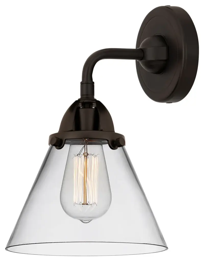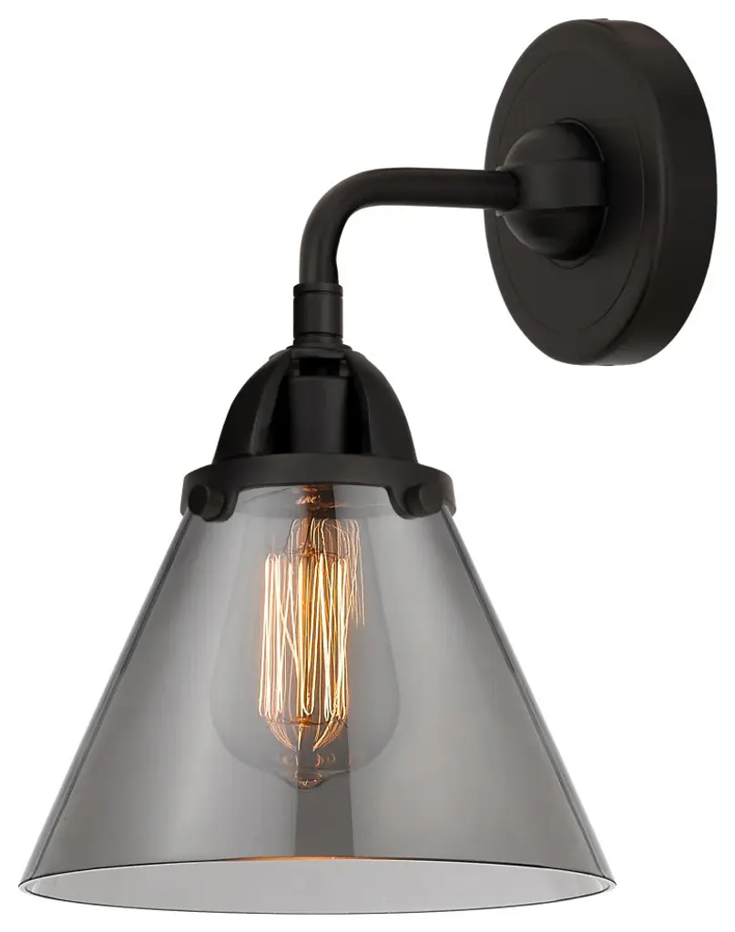 The Nouveau 2 is a highly detailed work of art that draws the eyes into its base and arm detail. The true show stopping piece is the beautifully curved glass shade that''s sure to wow you and guests alike.Features:Fixture can be hung with bulbs facing up or down4.5 inch 2mm heavy cast backplateDistance from outlet opening to top of fixture 2.25 inchesRated for 100 watt maximumUL/CUL Damp RatedCompatible with Incandescent, LED, Fluorescent and Halogen bulbsNumber of Bulbs: 1Bulb Wattage: 60Bulb Type: IncandescentBulb Included: Not IncludedVoltage: 120Finish: Matte Black, Plated Smoke