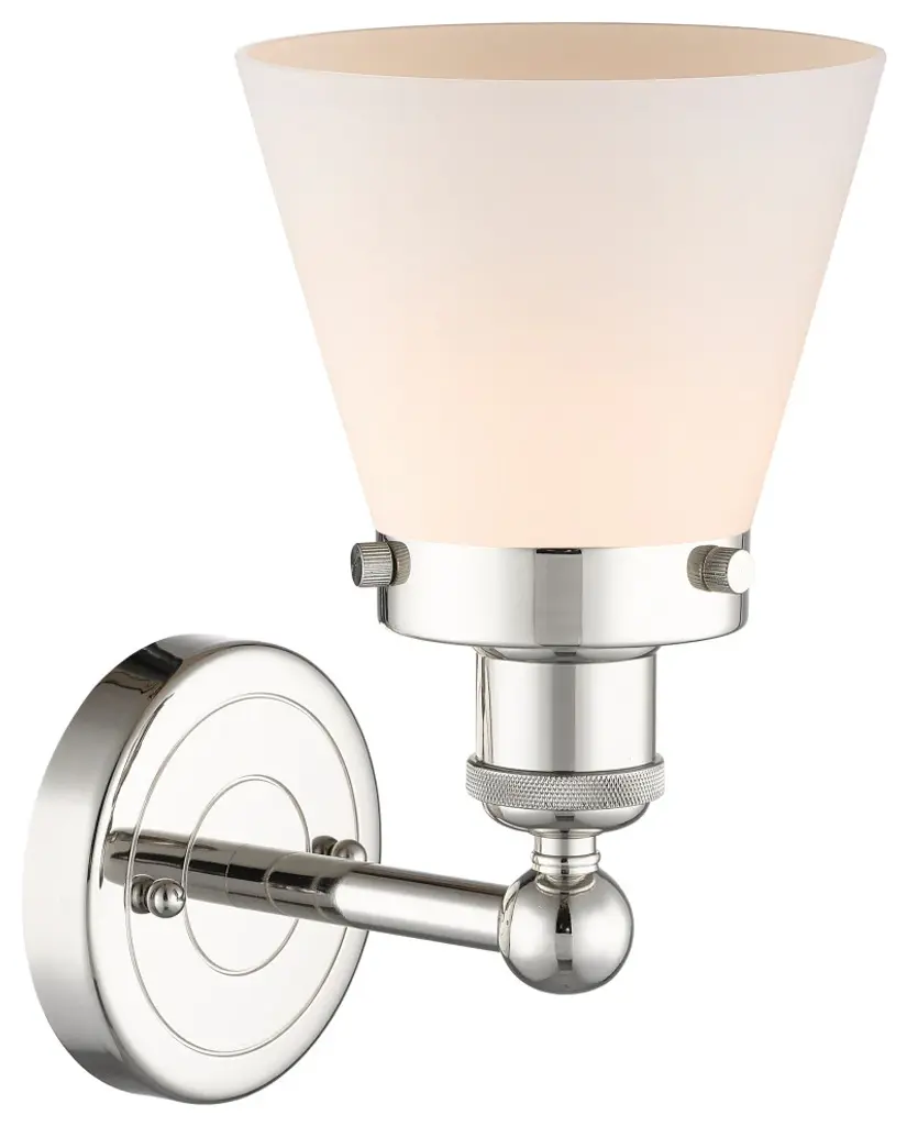 Small Cone 1-Light 7" Sconce, Polished Nickel Finish, Matte White Shade