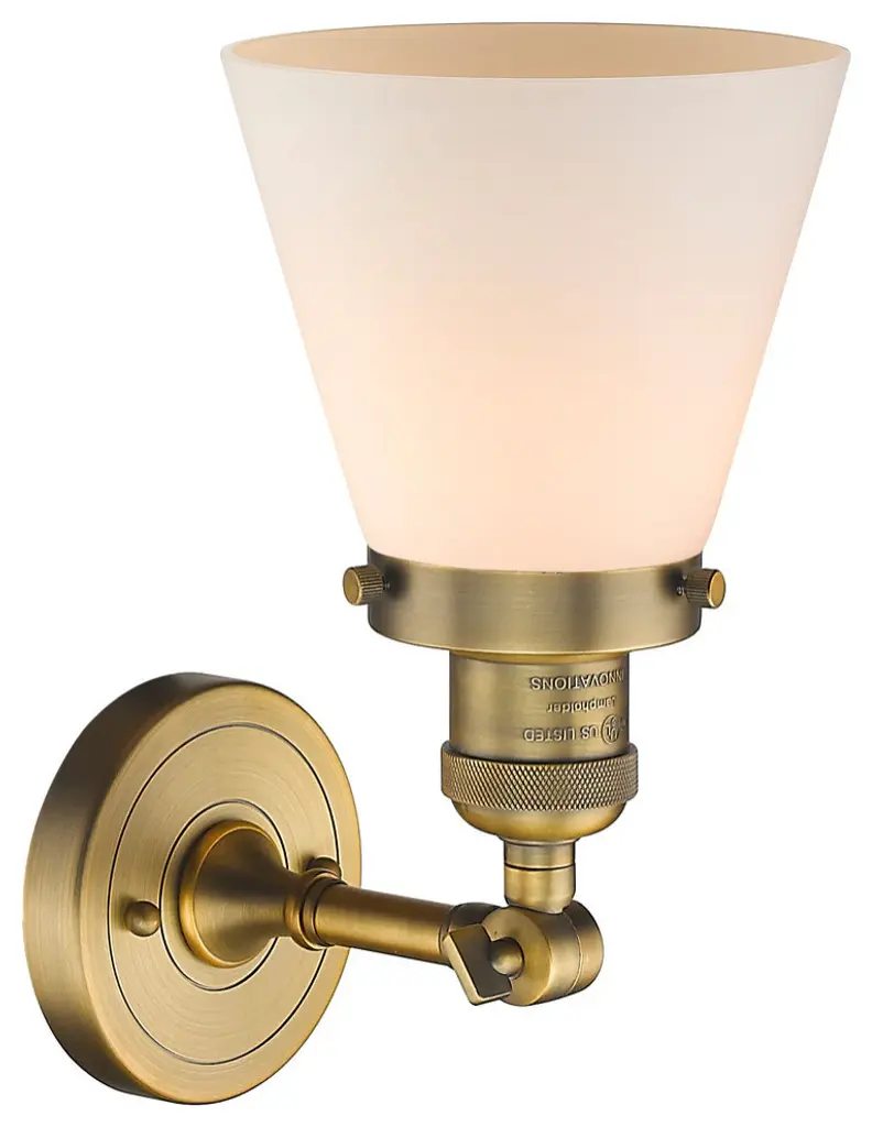 Small Cone 1-Light Led Sconce, Brushed Brass, Glass: Matte White Cased