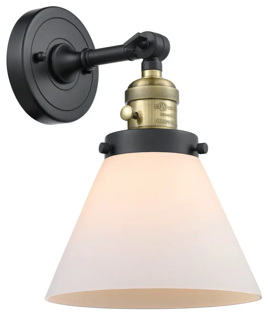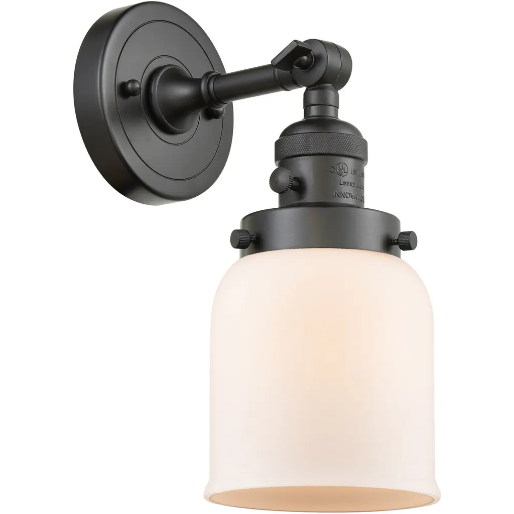 One of our largest and original collections, the Franklin Restoration is made up of a vast selection of heavy metal finishes and a large array of metal and glass shades that bring a touch of industrial into your home.Features:Solid brass 180 degree adjustable swivel with internal teeth that lock in at 5 degree intervals with engraved cast cup3 Way (High-Low-Off) switch included on socketFixture can be hung with bulbs facing up or down as a wall mount or facing down as a ceiling mount4.5 inch 2mm heavy cast backplateDistance from outlet opening to top of fixture 2.25 inchesRated for 100 watt maximumUL/CUL Damp RatedCompatible with Incandescent, LED, Fluorescent and Halogen bulbsNumber of Bulbs: 1Bulb Wattage: 3.5Bulb Type: LEDBulb Included: IncludedVoltage: 120Finish: Oil Rubbed Bronze Finish Shade Finish: Matte White Shade.