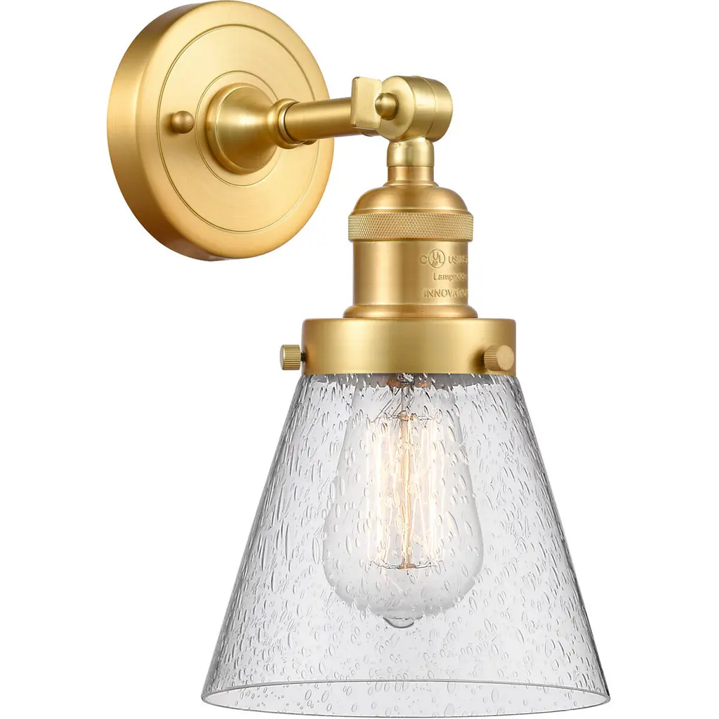 Small Cone 1-Light Led Sconce, Polished Chrome, Glass: Seedy