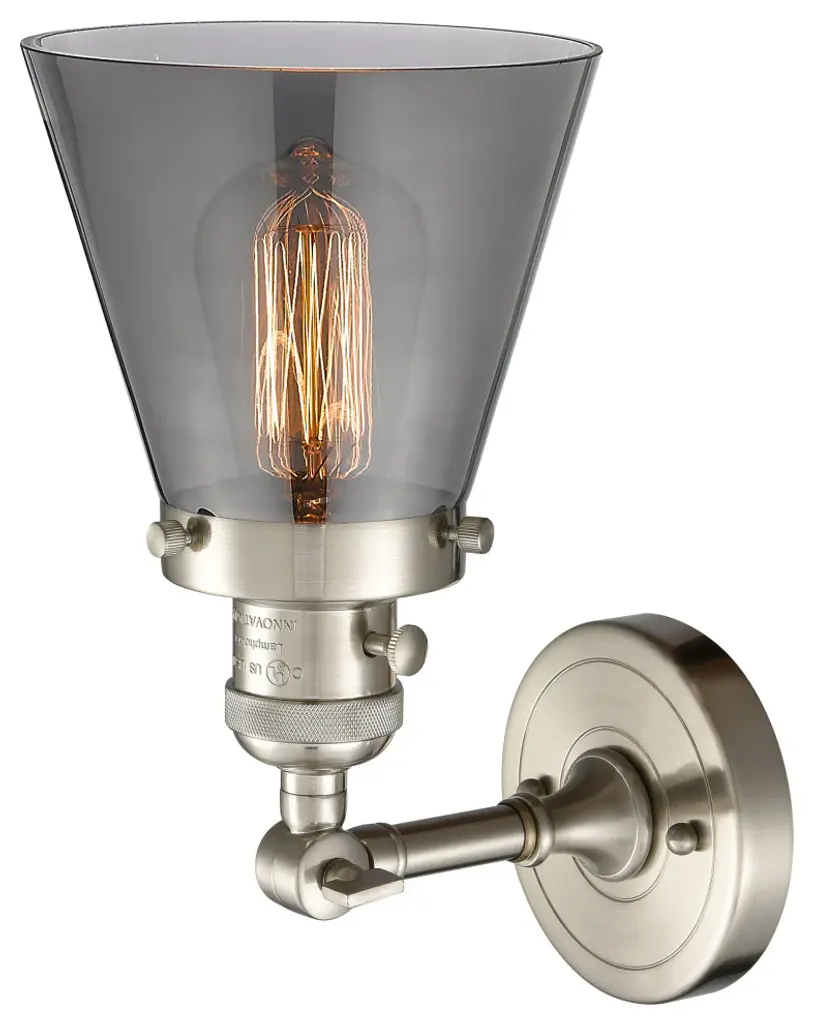 Small Cone 1-Light Sconce, Brushed Satin Nickel, Glass: Smoked