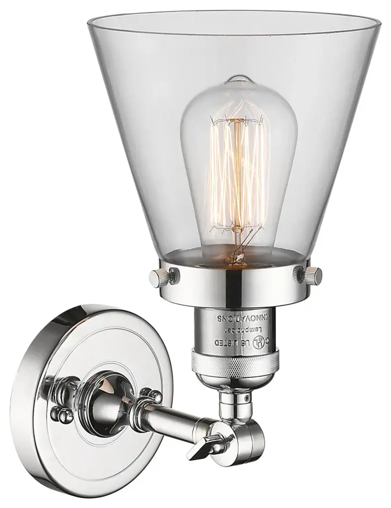 Small Cone 1-Light Sconce, Clear Glass, Polished Chrome