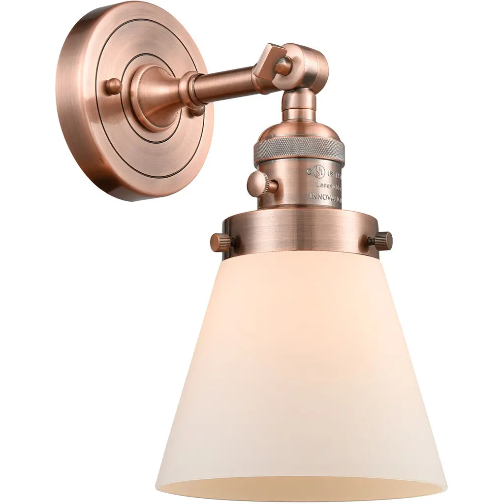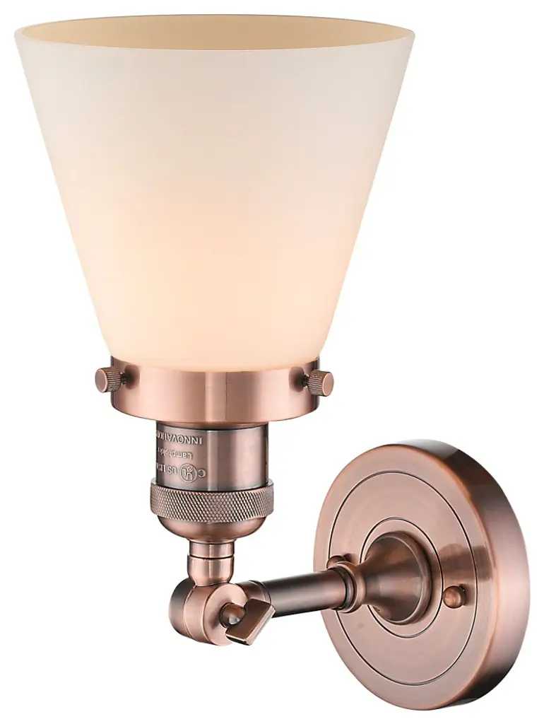 Small Cone 1-Light Sconce, Matte White Cased Glass, Antique Copper