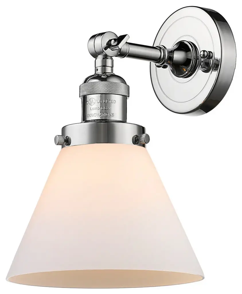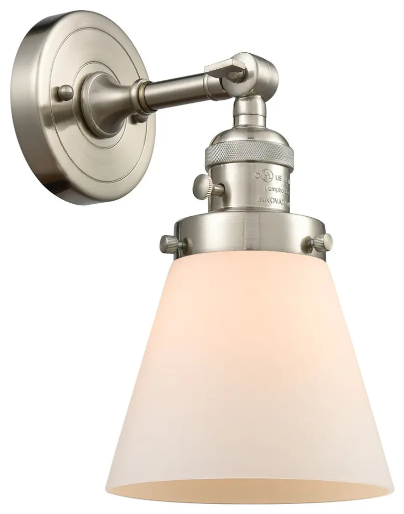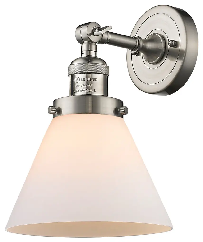 Small Cone 1-Light Sconce, Matte White Cased Glass, Satin Brush Nickel