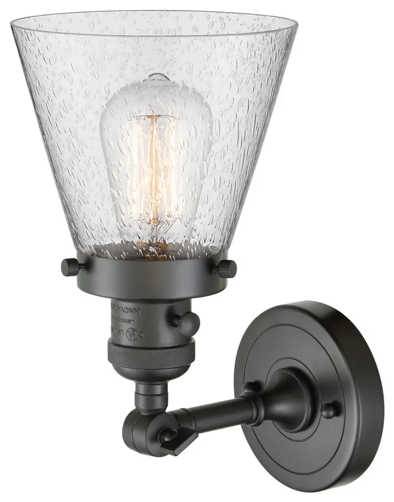 Small Cone 1-Light Sconce, Oil Rubbed Bronze, Glass: Seedy