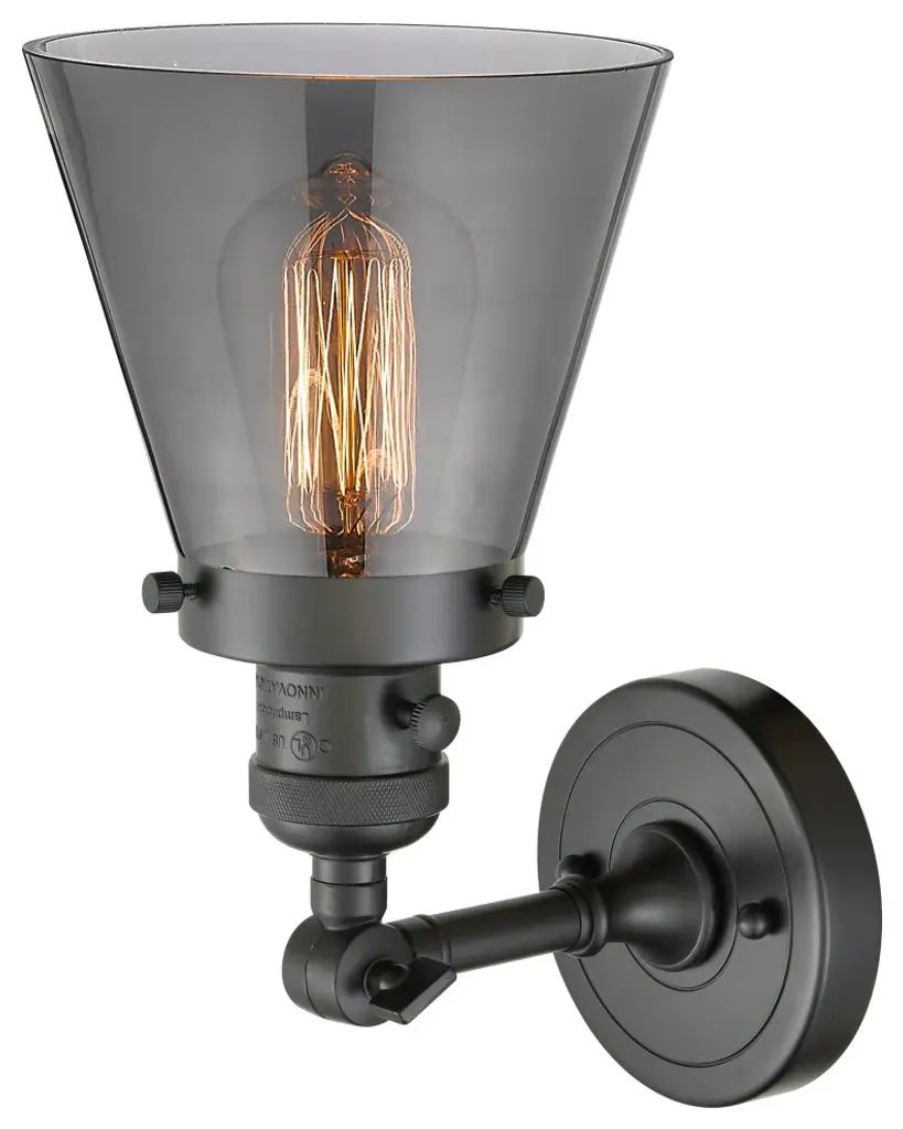 Small Cone 1-Light Sconce, Oil Rubbed Bronze, Glass: Smoked