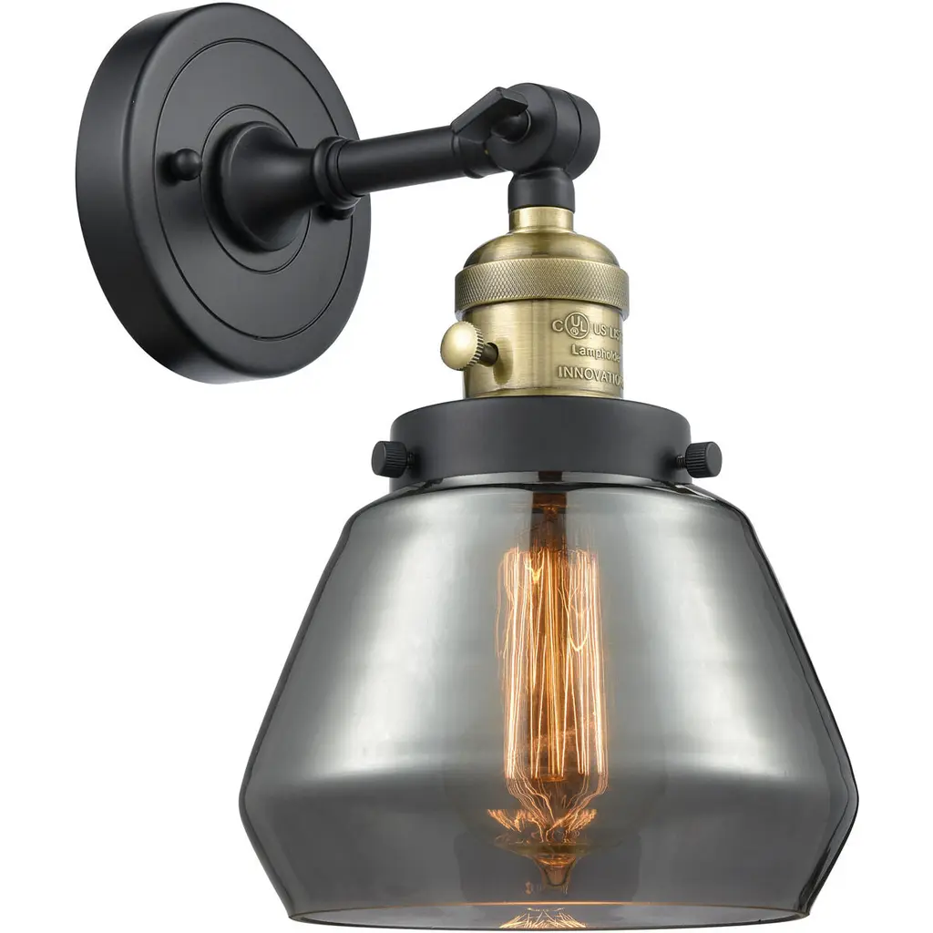 One of our largest and original collections, the Franklin Restoration is made up of a vast selection of heavy metal finishes and a large array of metal and glass shades that bring a touch of industrial into your home.Features:Solid brass 180 degree adjustable swivel with internal teeth that lock in at 5 degree intervals, and engraved cast cup3 way (High-Low-Off) switch included on socketFixture can be hung with bulbs facing up or down as a wall mount, or facing down as a ceiling mountDistance from outlet opening to top of fixture 2.25 inchRated for 100 watt maximumUL/CUL and ETL/CETL damp ratedCompatible with incandescent, LED, fluorescent and halogen bulbsNumber of Bulbs: 1Bulb Wattage: 60Bulb Type: IncandescentBulb Included: NoVoltage: 120Finish: Oil Rubbed Bronze Finish Shade Finish: Plated Smoke Shade.