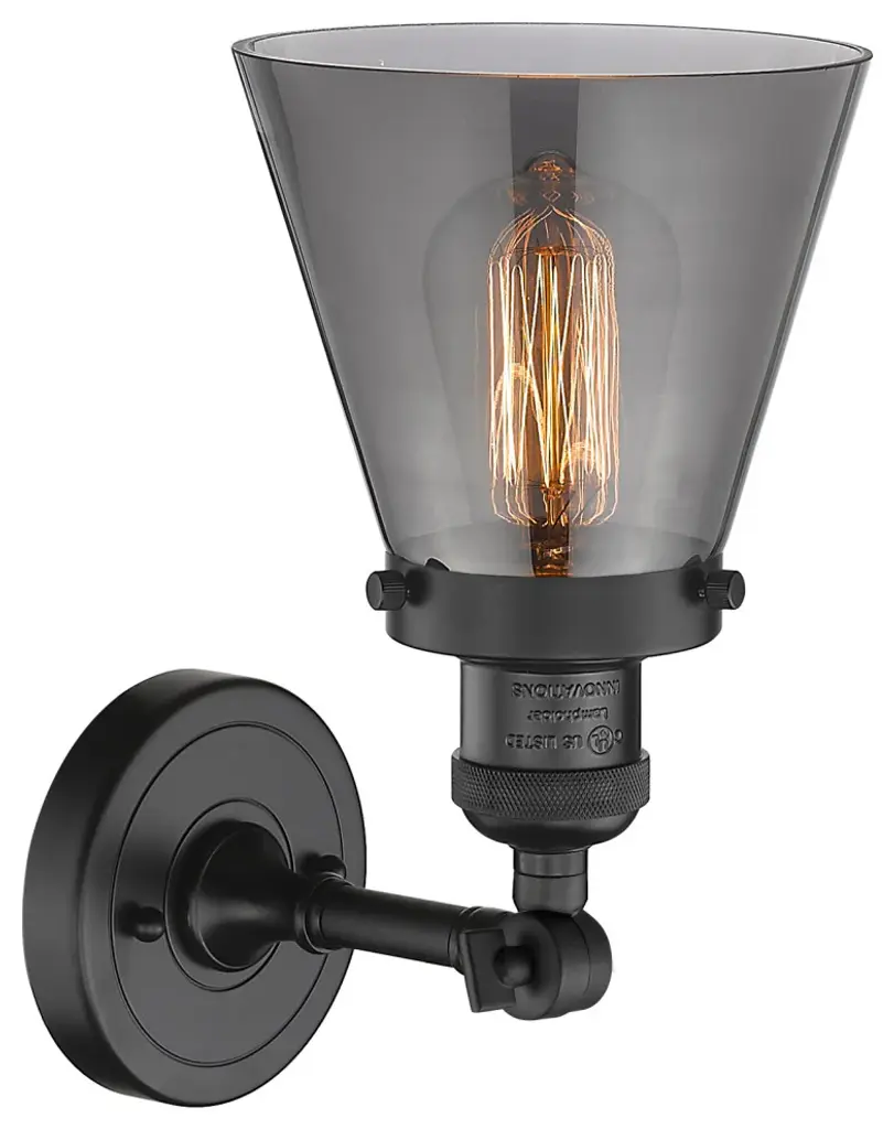 Small Cone 1-Light Sconce, Smoked Glass, Matte Black