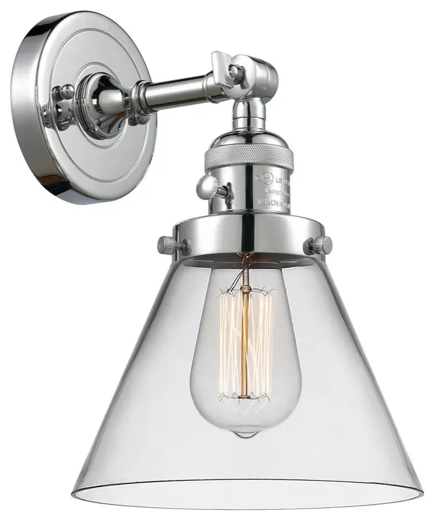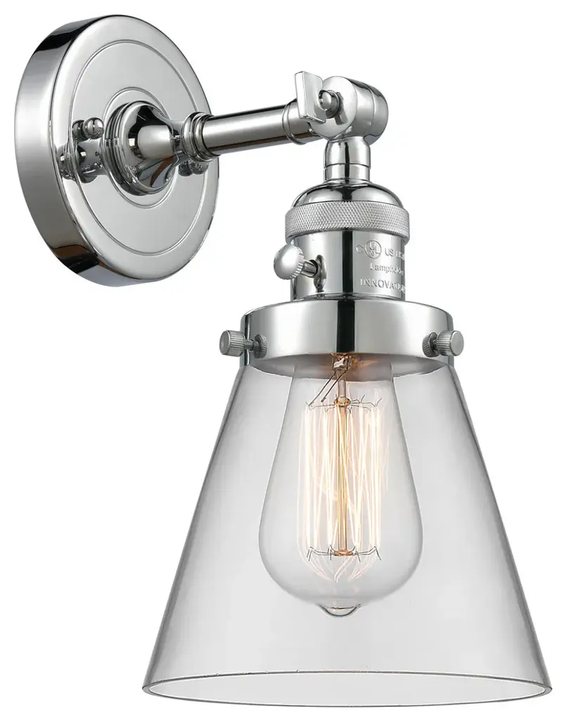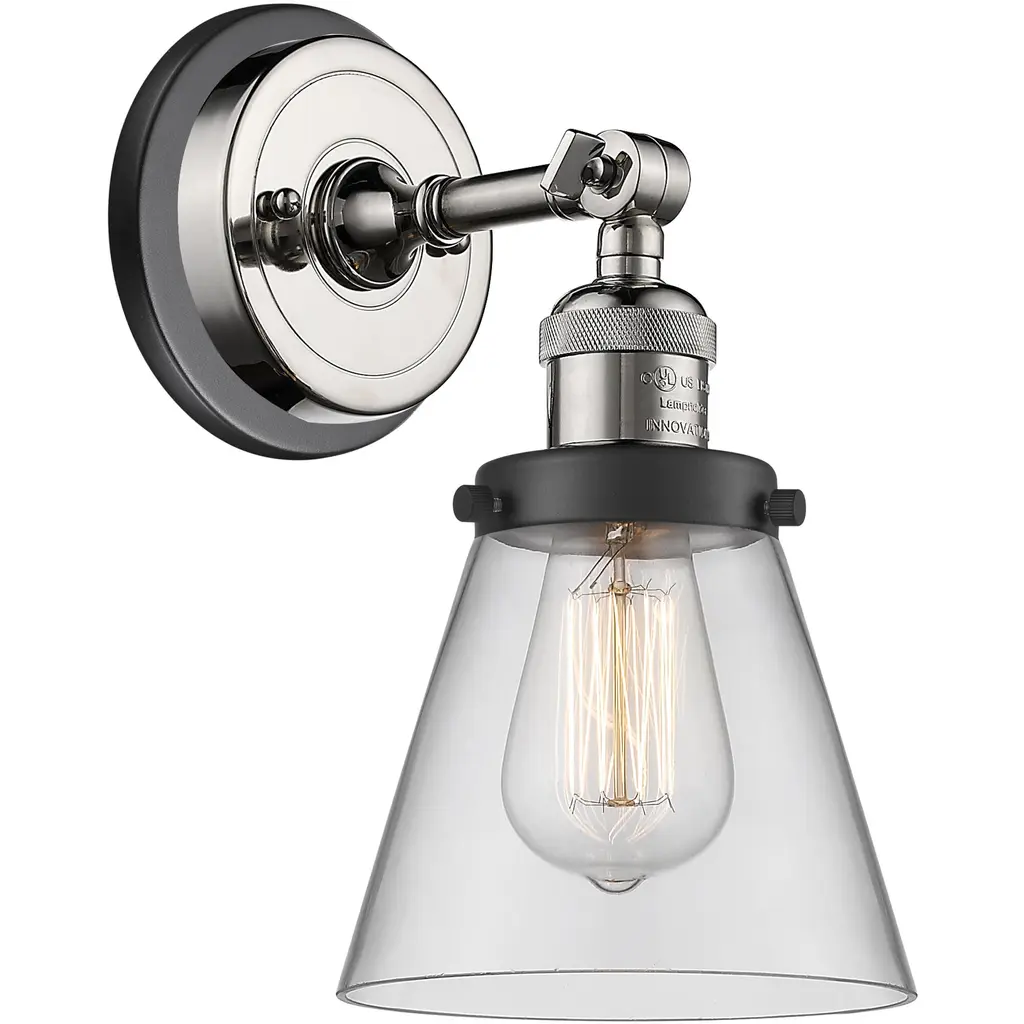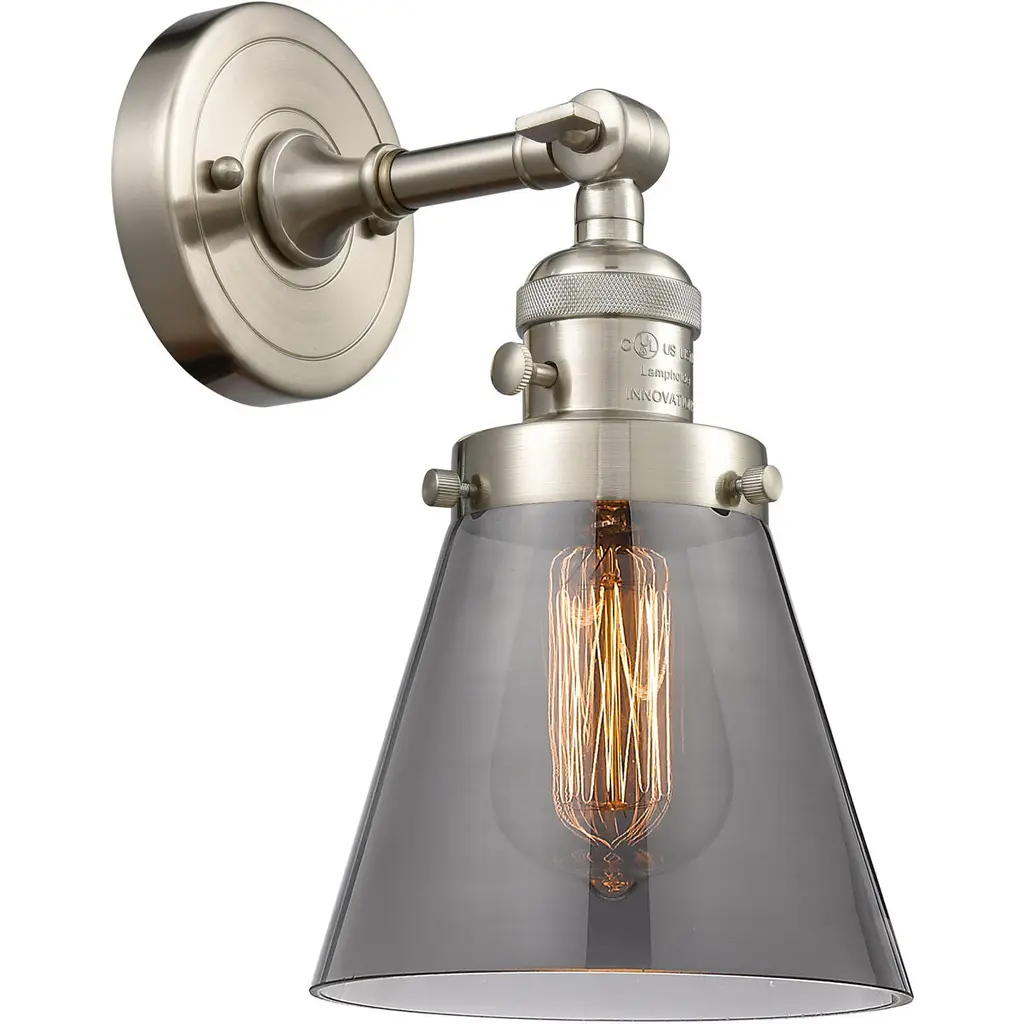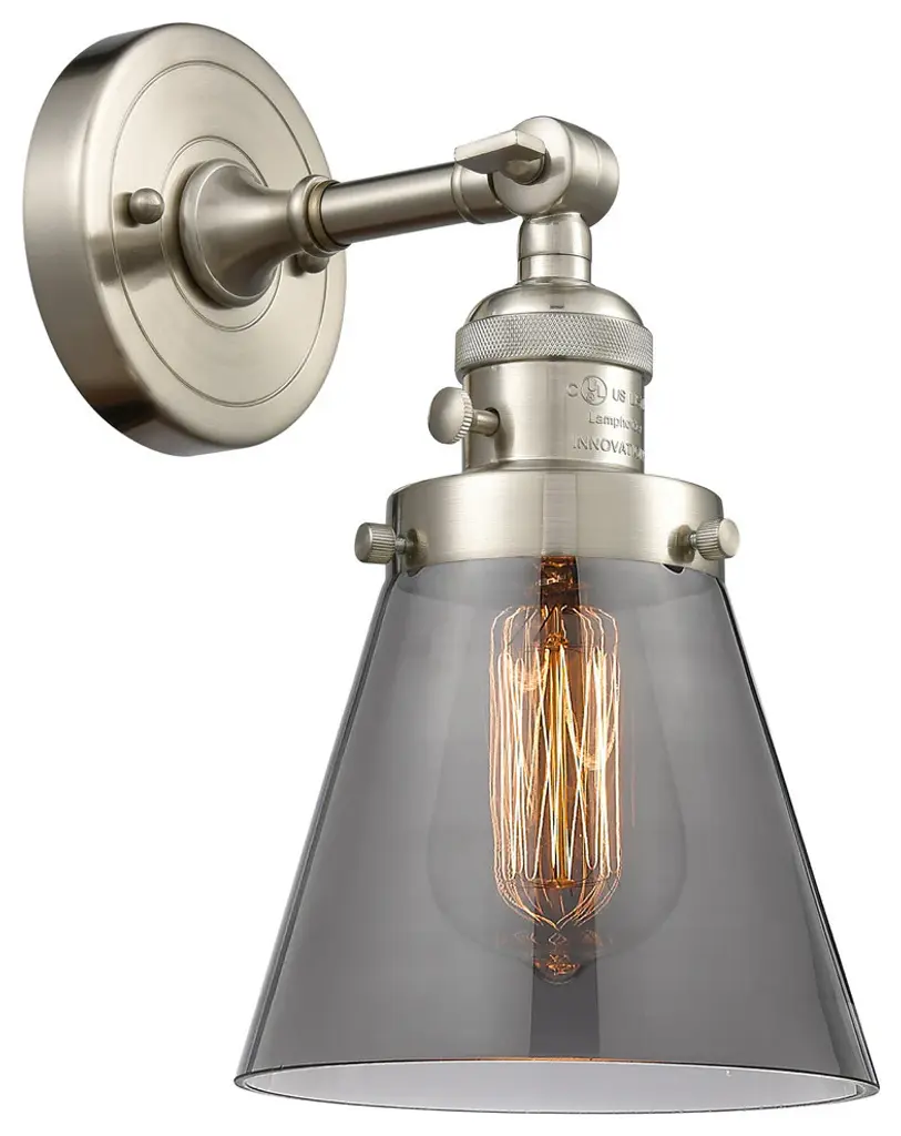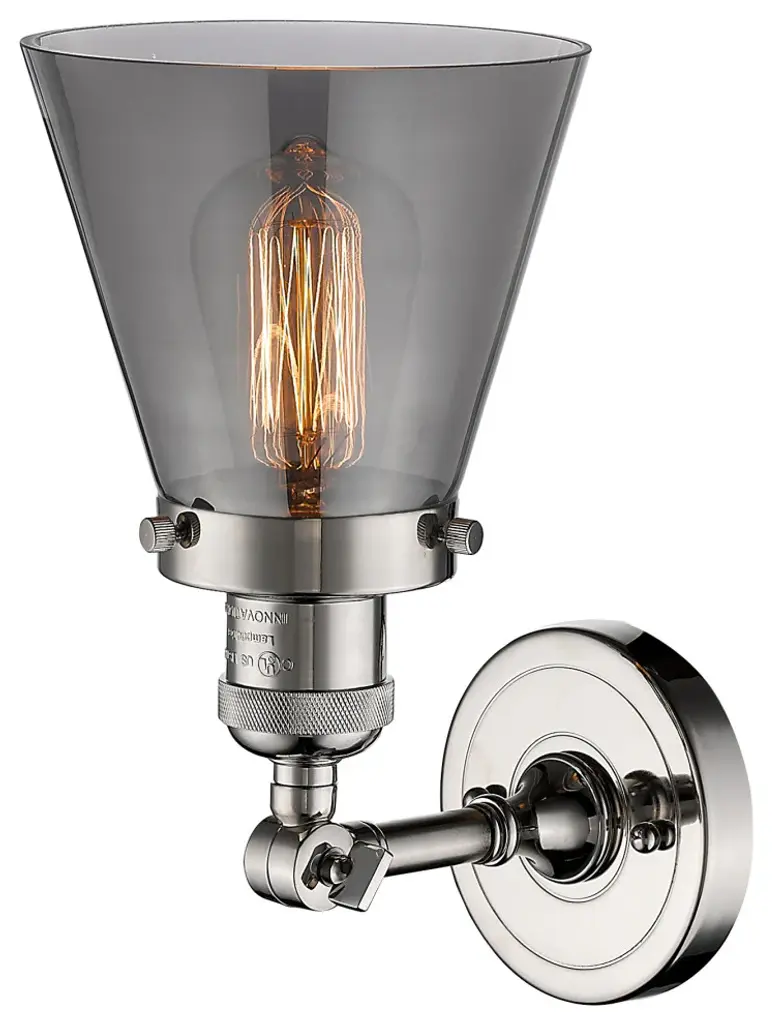 Small Cone 1-Light Sconce, Smoked Glass, Polished Nickel
