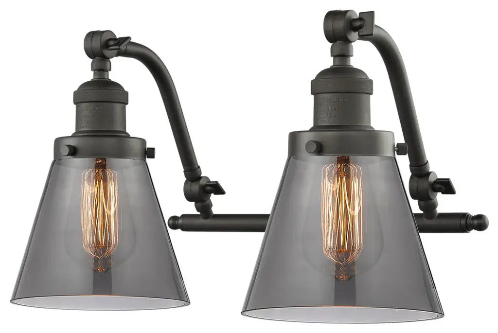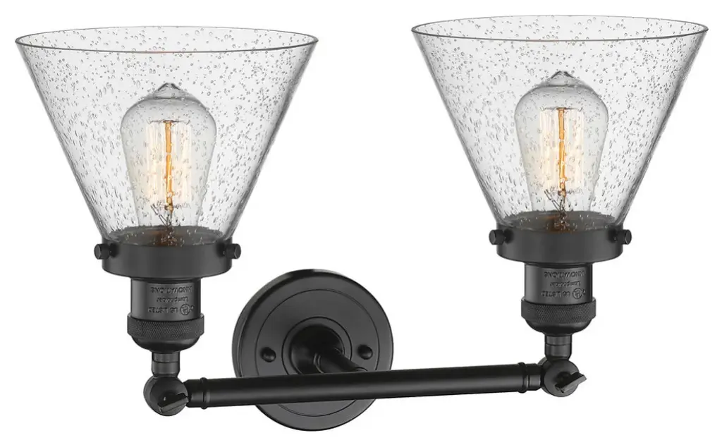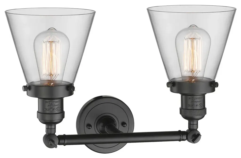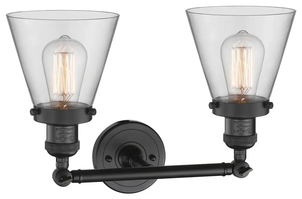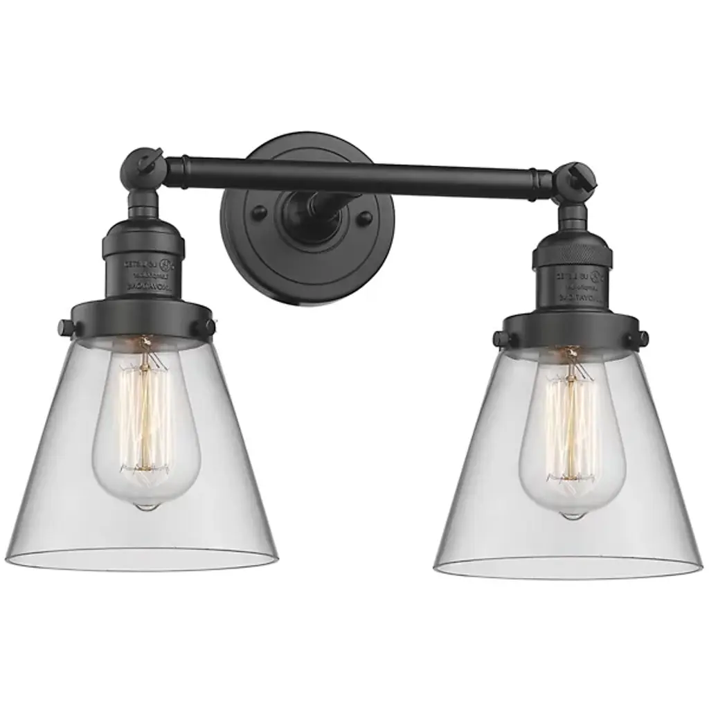 Small Cone 2-Light Bath Fixture, Clear Glass, Matte Black