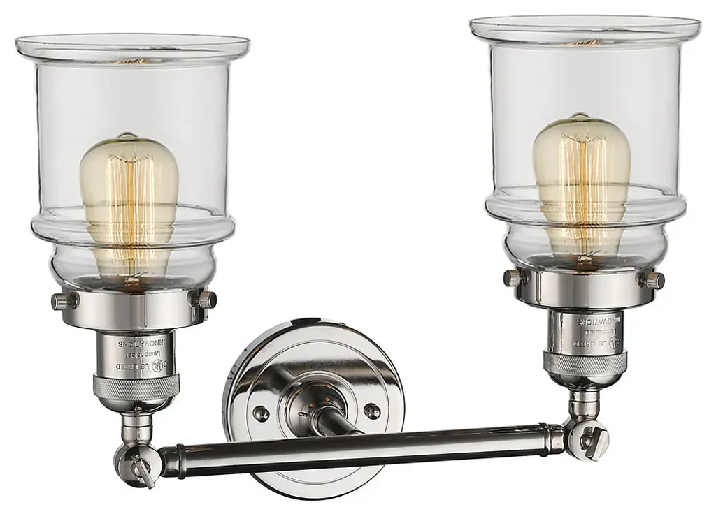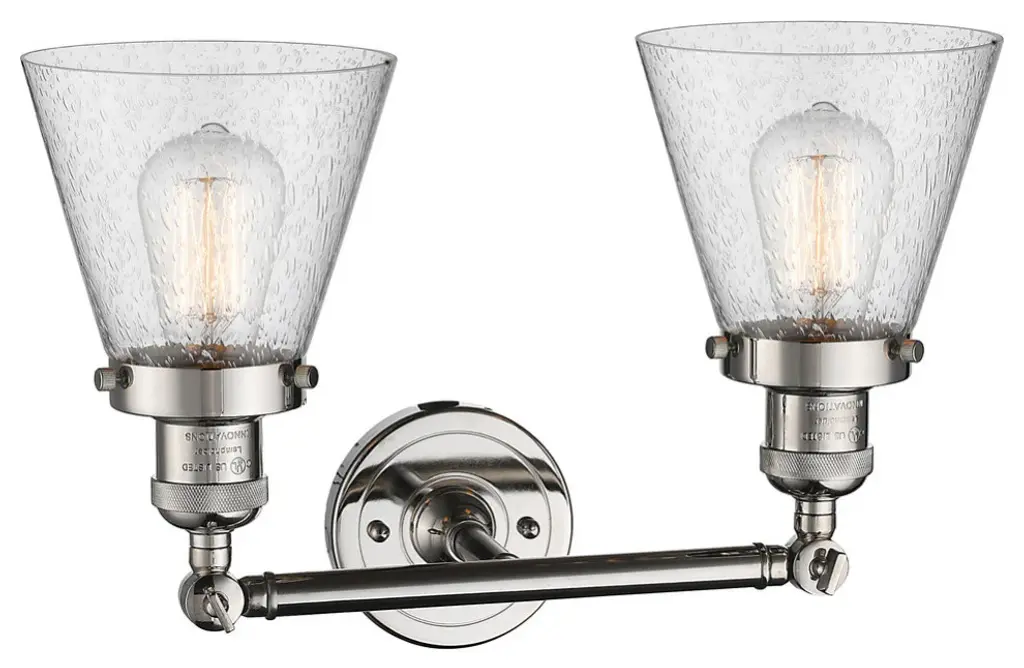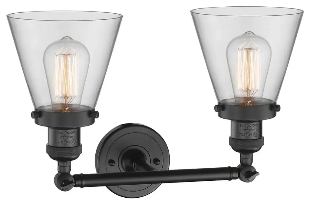 Small Cone 2-Light Bath Fixture, Clear Glass, Polished Chrome