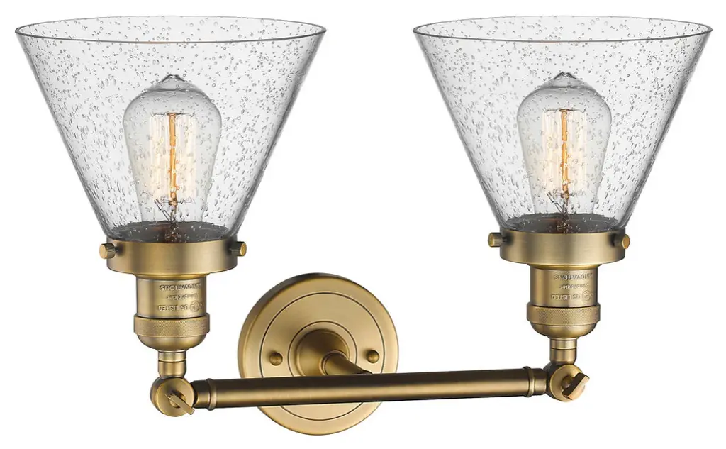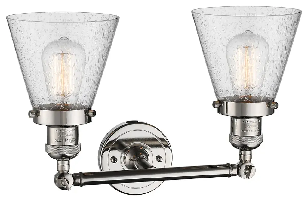 Small Cone 2-Light Bath Fixture, Seedy Glass, Polished Nickel
