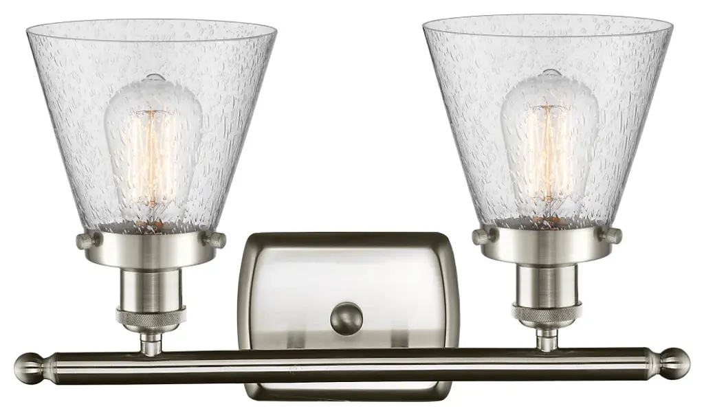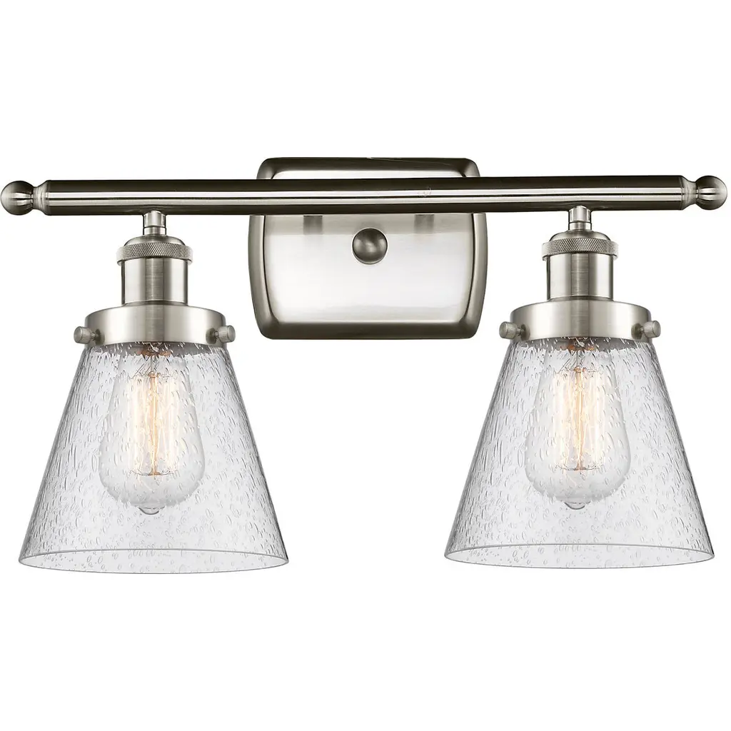 Small Cone 2-Light Bath Vanity-Light, Brushed Satin Nickel, Seedy