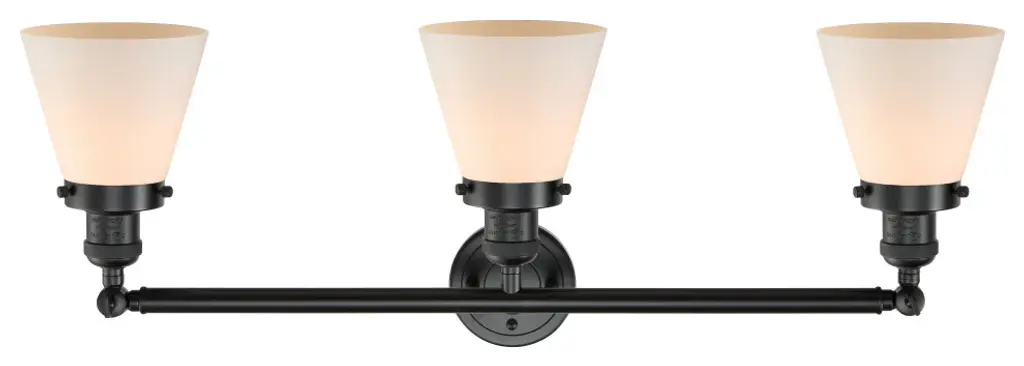 Small Cone 3-Light Bath Fixture, Matte White Cased Glass, Oil Rubbed Bronze