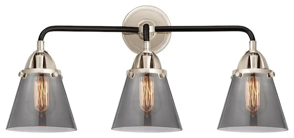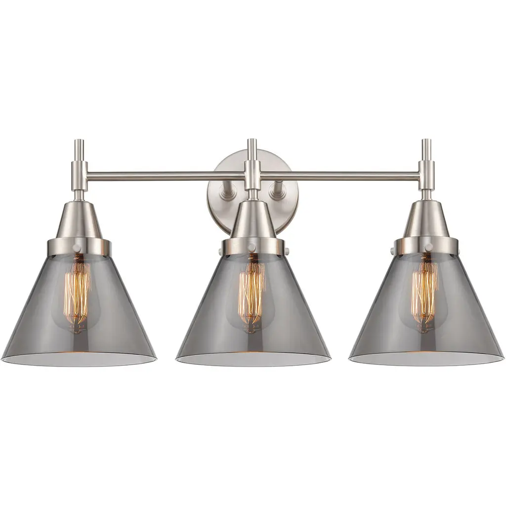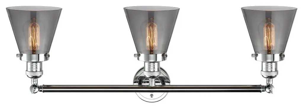 Small Cone 3-Light Bath Fixture, Smoked Glass, Polished Chrome