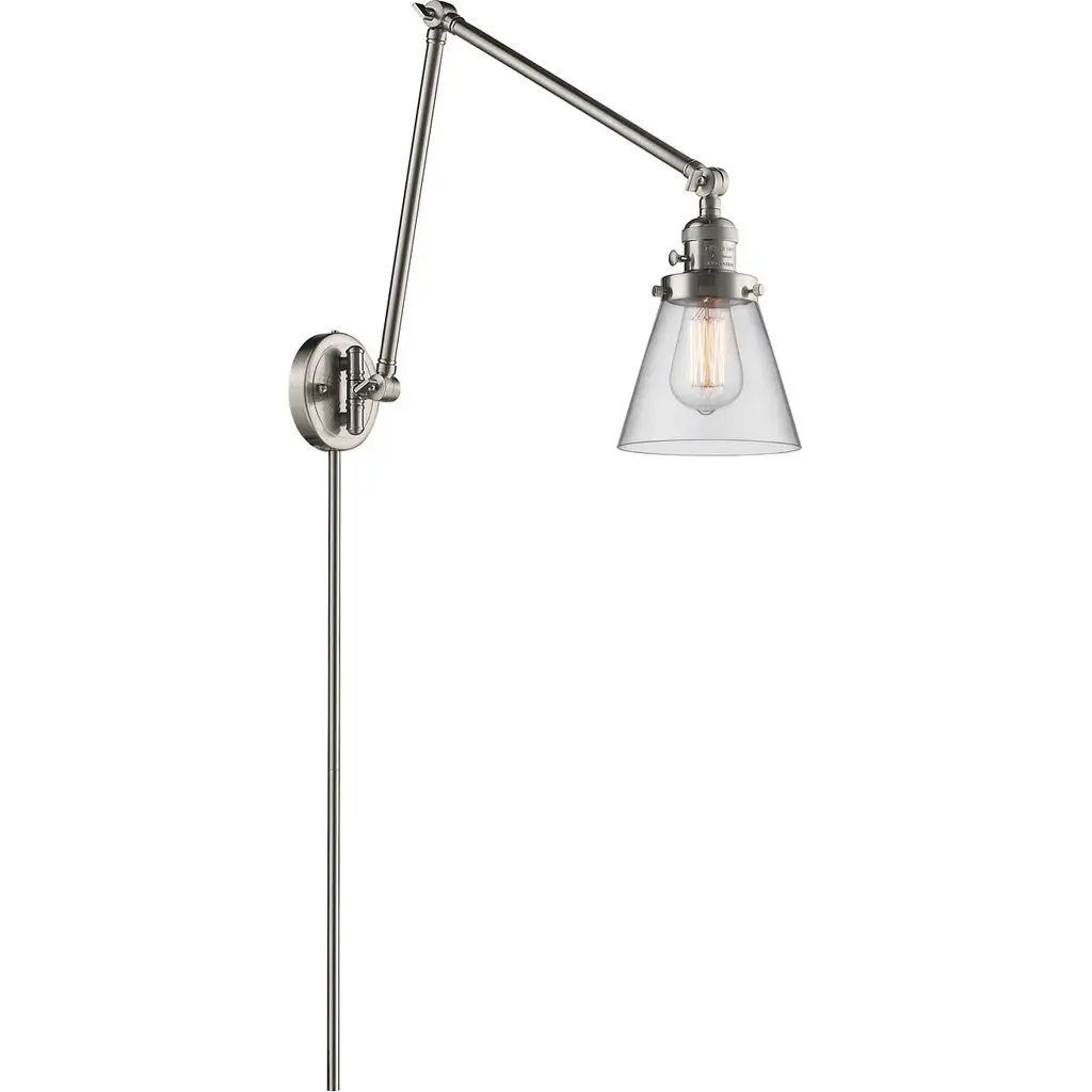 Small Cone 30 Inch 60.00 Watt Satin Nickel Swing Arm Wall Light, Franklin Restoration