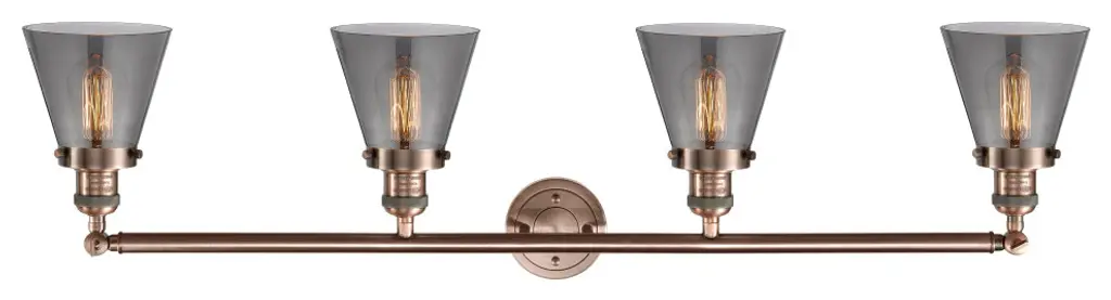 Small Cone 4-Light Bath Fixture, Smoked Glass, Antique Copper