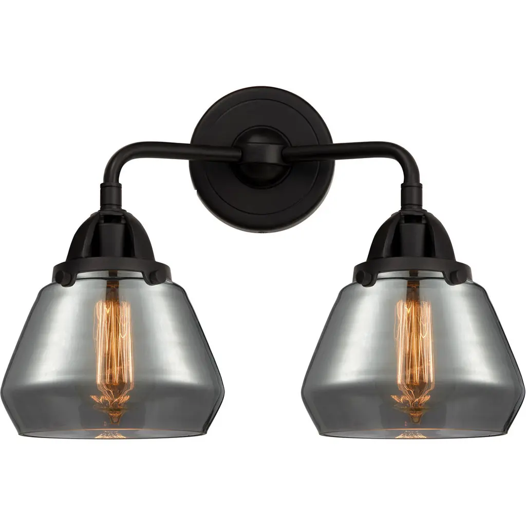 The Nouveau 2 is a highly detailed work of art that draws the eyes into its base and arm detail. The true show stopping piece is the beautifully curved glass shade that''s sure to wow you and guests alike.Features:Fixture can be hung with bulbs facing up or down4.5 inch 2mm heavy cast backplateDistance from outlet opening to top of fixture 2.25 inchesRated for 100 watt maximum per socketUL/CUL Damp RatedCompatible with Incandescent, LED, Fluorescent and Halogen bulbsNumber of Bulbs: 2Bulb Wattage: 3.5Bulb Type: LEDBulb Included: IncludedVoltage: 120Finish: Oil Rubbed Bronze, Plated Smoke